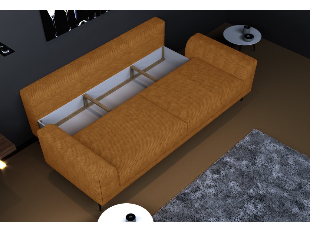 Pod sedací částí se nachází praktický úložný prostor o velikosti 191 × 63 × 13 cm, ideální pro uložení ložního prádla nebo přikrývek.
