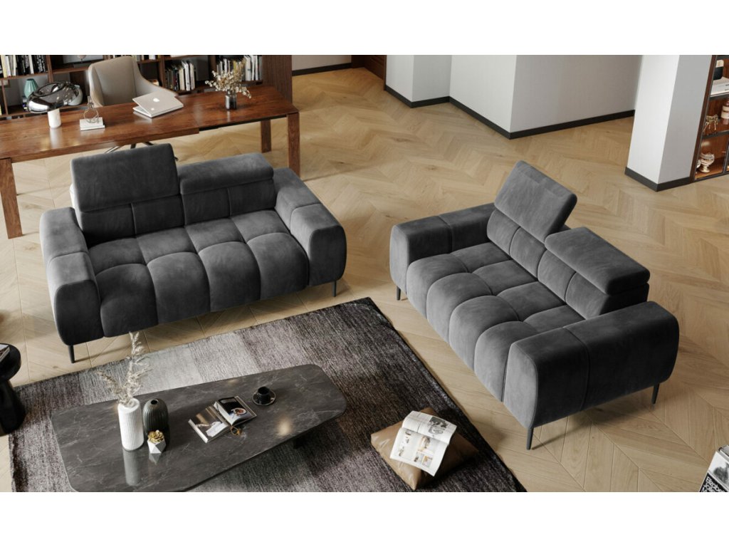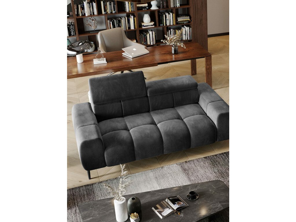 Třímístná sedačka s polohovatelnými záhlavníky a výrazným prošíváním skvěle zapadne do moderních interiérů a ladí s ostatními prvky kolekce Plaza.