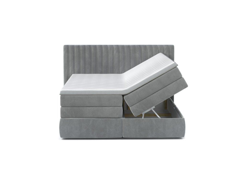 - spodní vrstva 18 cm - konstrukce se systémem pružin Boxspring Bonell Box, ideálně roznáší tlak absorbovaný nosnou matrací, dodá celé konstrukci odrazovou pružnost, vzdušnost a dlouhou životnost