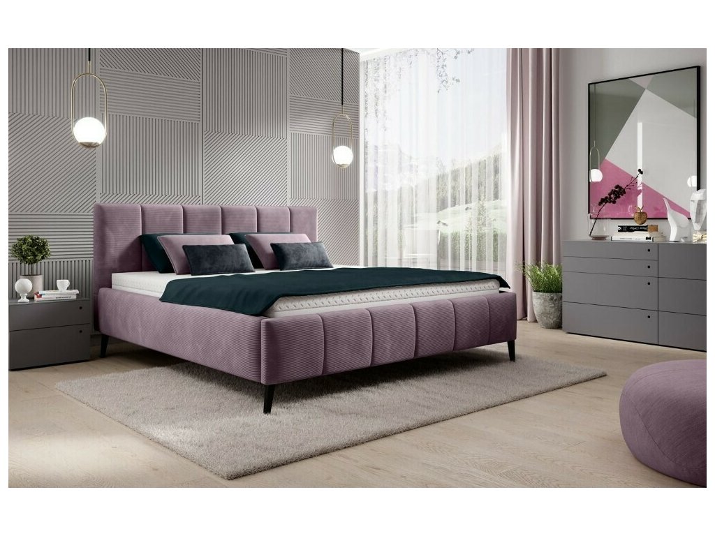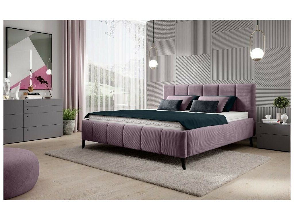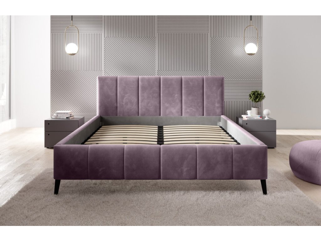 Stylové posteli Riva dominuje prostorné čelo s vertikálním prošíváním. Polstrované čelo ocení především ti z vás, kdo si před spaním rádi přečtou pár řádků. Stejně prošitý je i čelní rám postele, boky zůstávají hladké. Postel stojí na vyšších nožičkách (17 cm) ze dřeva v černé barvě. Postel disponuje praktickým úložným prostorem pro uskladnění lůžkovin, rozměr 200 x 140 x 15 cm.