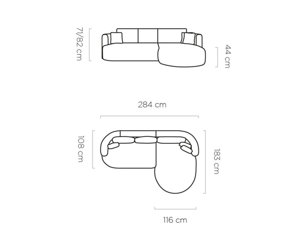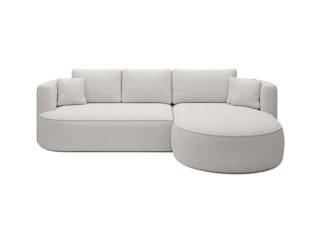 Sedací souprava Fiore v akčních látkách Buble zaujme svými měkkými tvary, zaobleným otomanem i zakončením sedací části s područkami. Hladký povrch bez prošívání dodává celé sedačce nadčasovou eleganci, která se hodí jak do moderních, tak klasických interiérů.