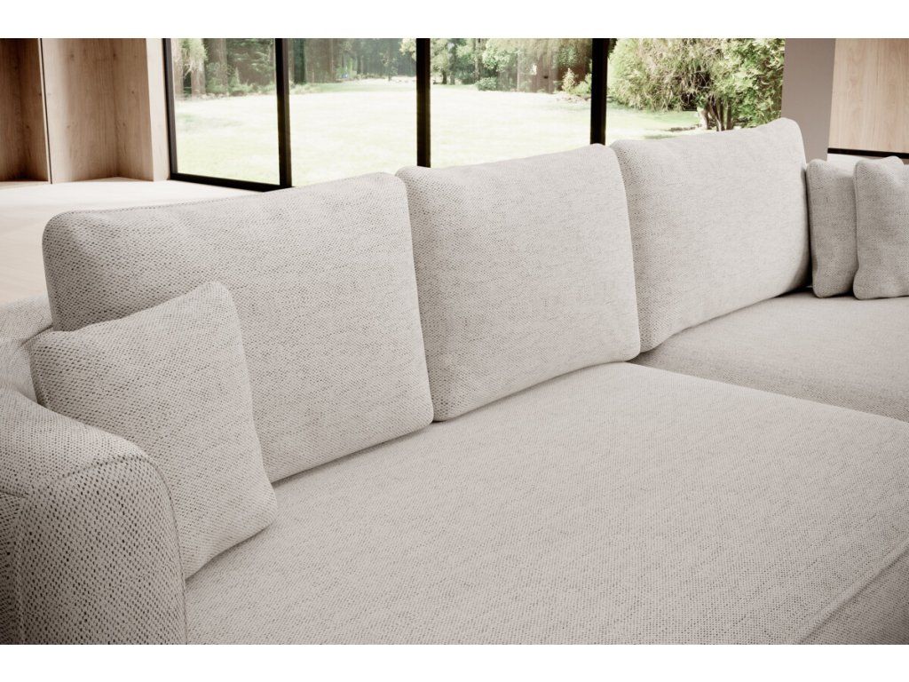 Součástí sedačky je rozkládací funkce, díky které ji snadno proměníte v lůžko pro příležitostné přespání. Praktický úložný prostor poskytne místo pro lůžkoviny, deky či polštáře. Pohodlí zajišťují tři velké a tři malé opěrné polštáře, které jsou součástí soupravy.