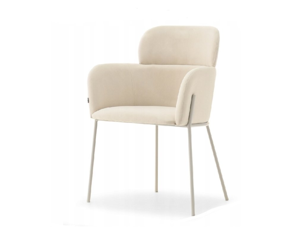 Béžový velur vytváří jemný, teplý a harmonický vzhled, který snadno zapadne do světlých i kontrastních interiérů. Světlá kovová podnož působí vzdušně a moderně a společně s velurovým čalouněním tvoří elegantní nadčasovou kombinaci. Podnož je ošetřena práškovým nástřikem zajišťujícím odolnost při každodenním používání.