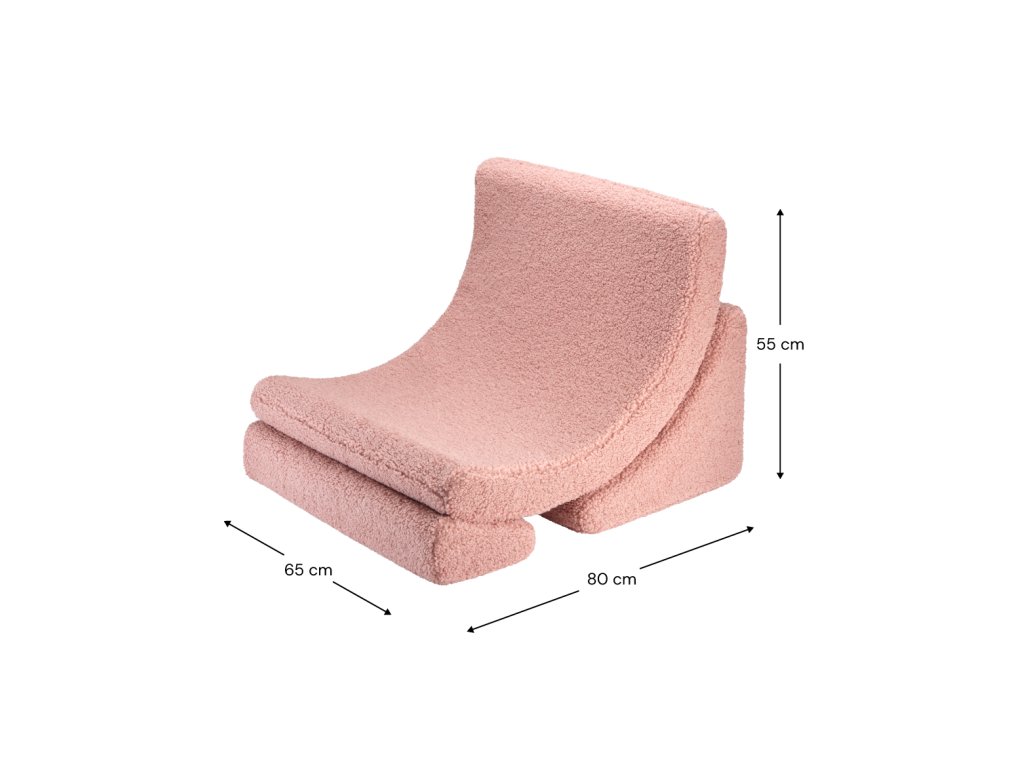 Elegantní růžový odstín bouclé působí jemně a zároveň hravě. Snadno zapadne do moderního dětského pokoje i rodinného obývacího prostoru. Toto dětské křeslo tak není jen praktickým místem pro sezení, ale také stylovým doplňkem interiéru.