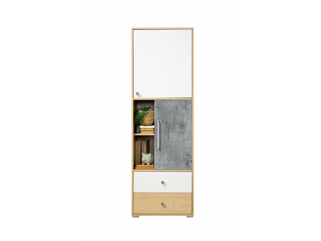 Elegantní a originální nábytek z kolekce Step se skládá z 12 jednotlivých prvků, jež k sobě perfektně ladí a lze je kombinovat dle individuálních potřeb. S nábytkem Step zařídíte dětský i studentský pokoj, kancelář, domácí pracovnu i obývací pokoj. Příjemné, nekřiklavé barevné provedení - bílá, dub, beton, navodí klidnou atmosféru v místnosti a snadno jej sladíte s jakýmikoliv doplňky. Bezchybná funkčnost a kvalitní zpracování vám nabízí právě nábytek Step, jež bude dobře sloužit dlouhé roky.