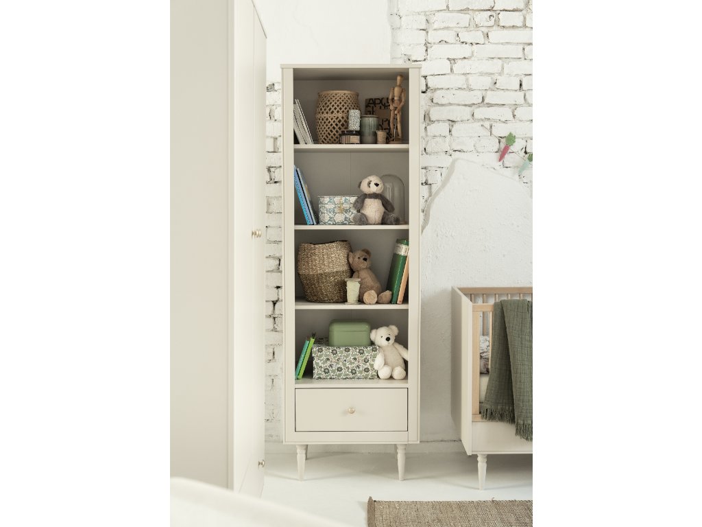 Regál Pinio Petite béžový je navržen jako univerzální úložný prvek do dětského pokoje. Díky třem otevřeným policím poskytuje dostatek prostoru pro knihy, hračky, boxy, dekorace nebo oblečení. Spodní zásuvka nabízí diskrétní úložný prostor pro věci, které chcete mít uklizené mimo dohled.