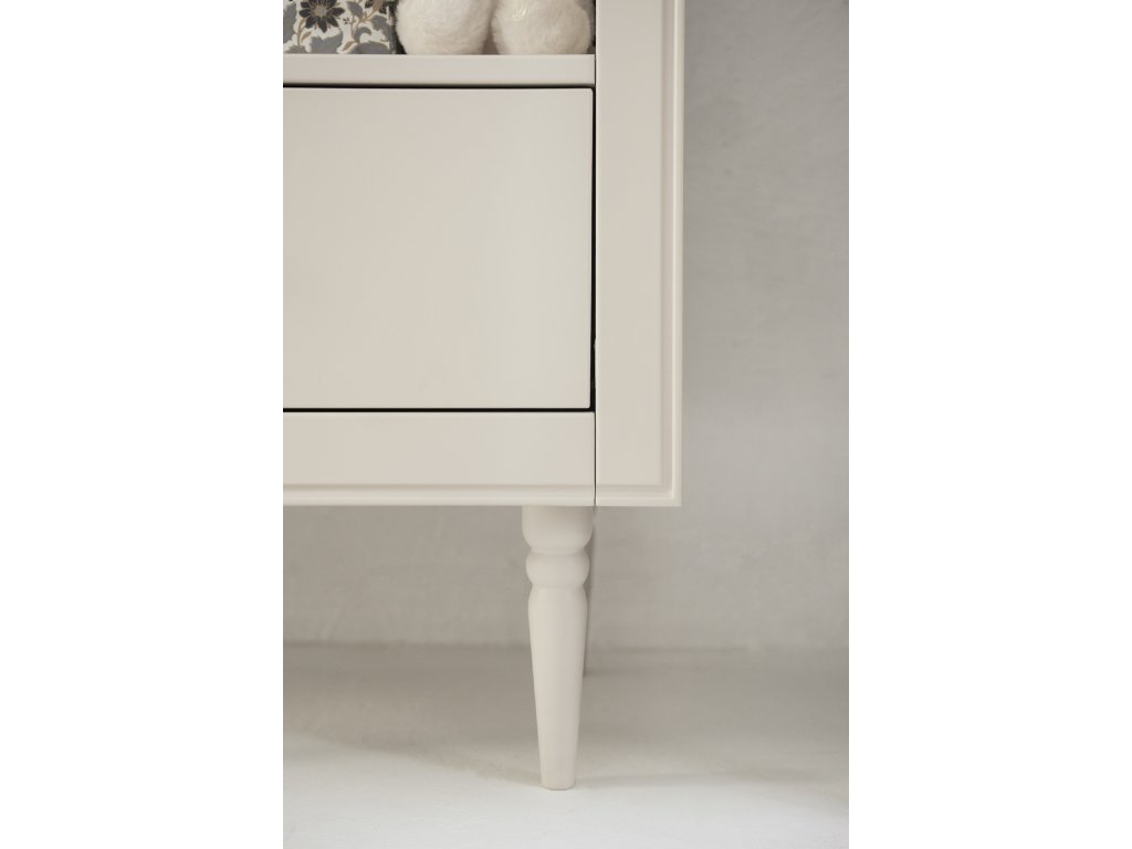 - kovová úchytka zásuvky je v odstínu zašlého zlata a elegantně doplňuje béžový tón nábytku
