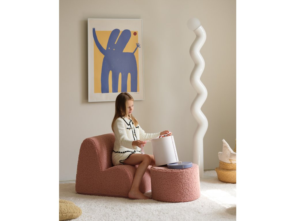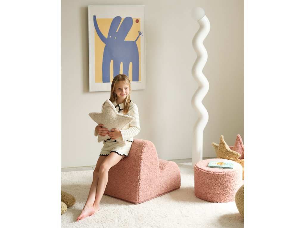 Dětský sedací puf Wigiwama bouclé růžový – komfort a styl pro dětský pokoj