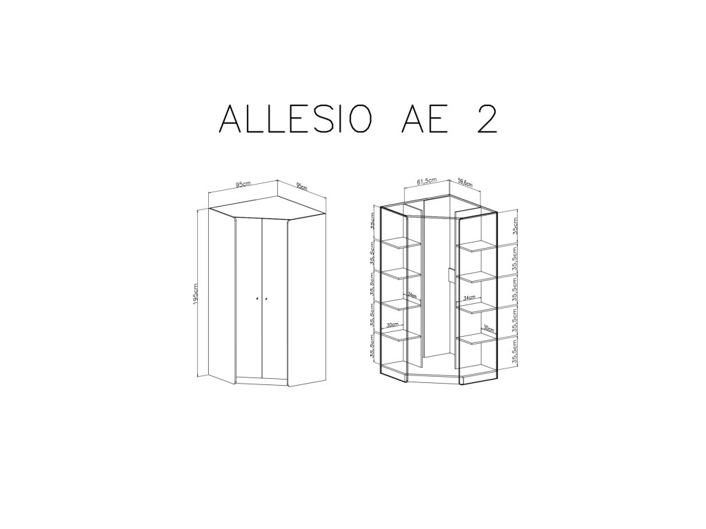- Šatní skříň rohová Alessio 2 - eukalyptová - velikost (š) 95 x (v) 195 x (h) 95 cm
