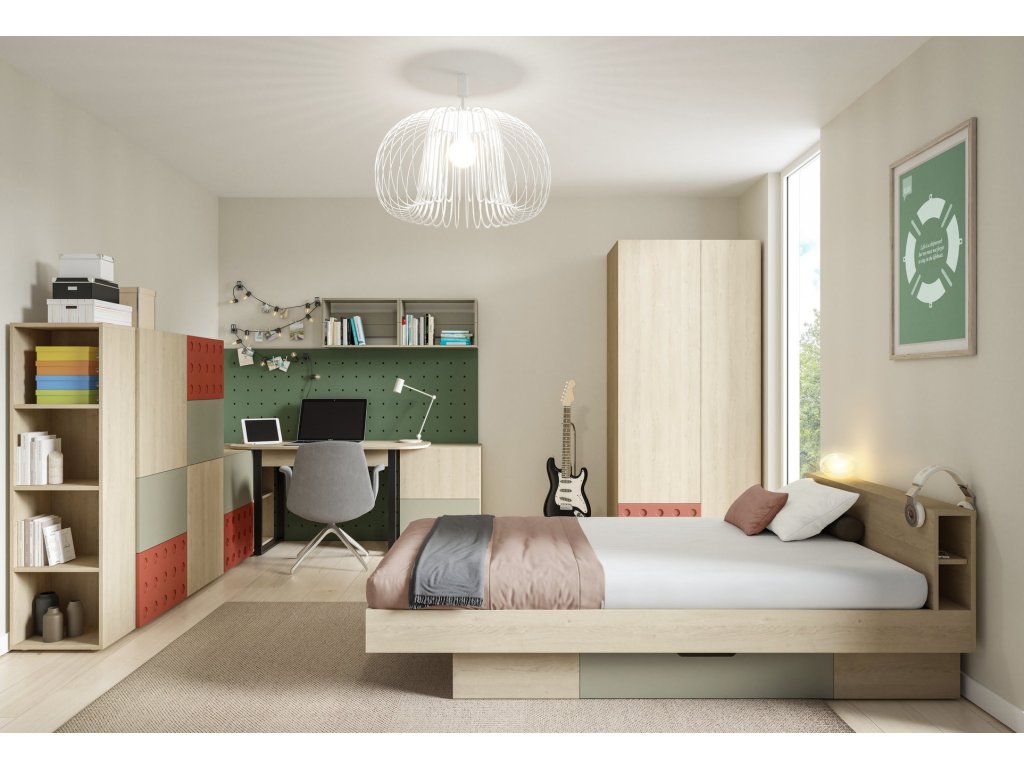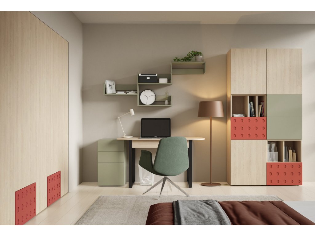 Kolekce Salsa kombinuje světlý dubový dekor s jemným eukalyptovým odstínem a výrazným oranžovým prvkem Salsa, který díky plastické razbě připomíná LEGO kostičku. Jednotlivé prvky kolekce lze libovolně kombinovat a vytvářet jednotný, svěží a hravý design v dětských i studentských pokojích.