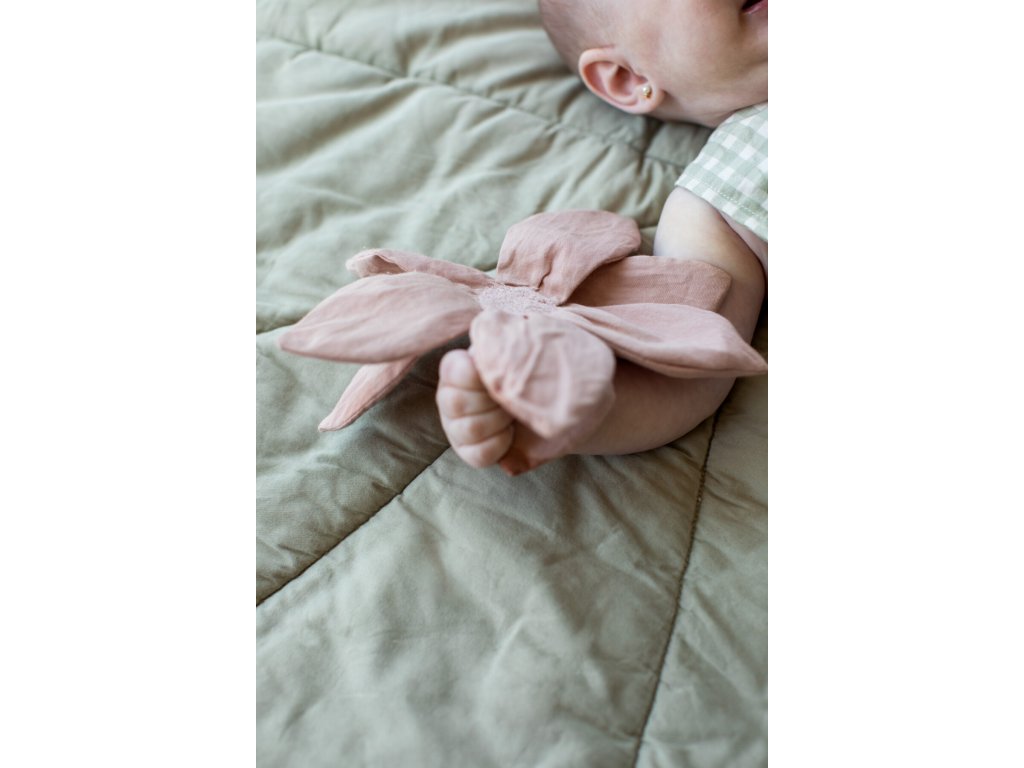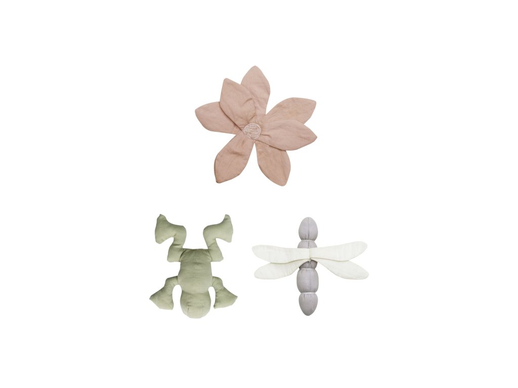 Set tří textilních hraček je určený miminkům již od narození. Vážka, žába a květ leknínu jsou měkké hračky vyrobené z těch nejkvalitnějších materiálů a dají se opakovaně prát v ruce. Krásná sada v barvách, jež ladí k dalším kouskům ze stejnojmenné kolekce.