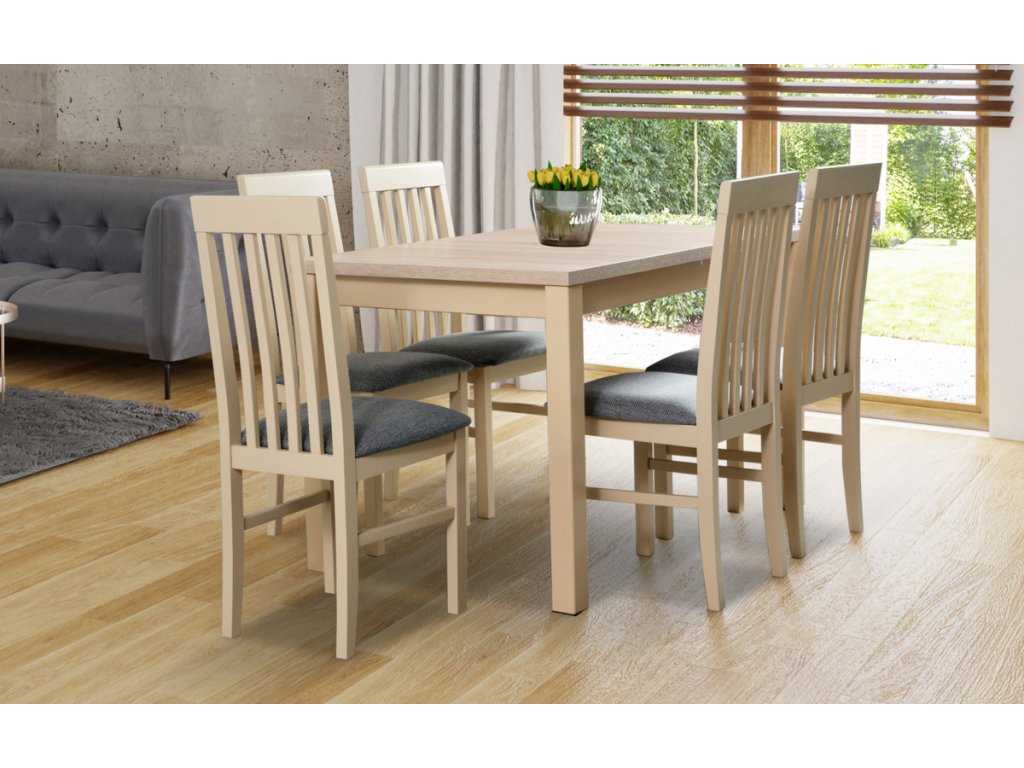 Kvalitní jídelní sestava z bukového dřeva pro 6 osob do každé domácnosti, restaurace i kavárny. Jídelní stůl Max V je rozkládací na délku 150 cm.