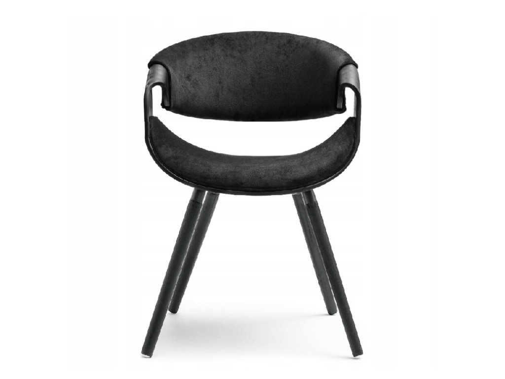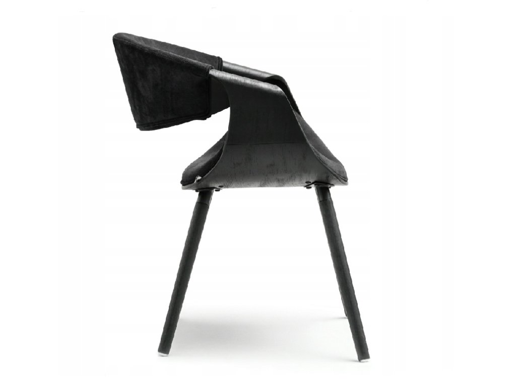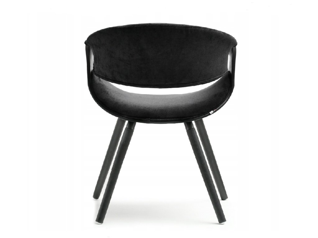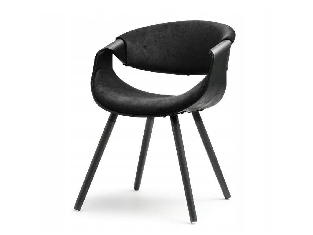 Židle Bent zaujme zaoblenou skořepinou z ohýbané dýhované překližky v černém odstínu, která dodává moderní a výrazný vzhled. Elegantní křivky přecházejí plynule do područek, které poskytují přirozenou oporu. Černá podnož navazuje na odstín skořepiny a vytváří jednolitý, harmonický celek.