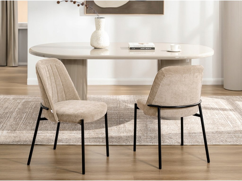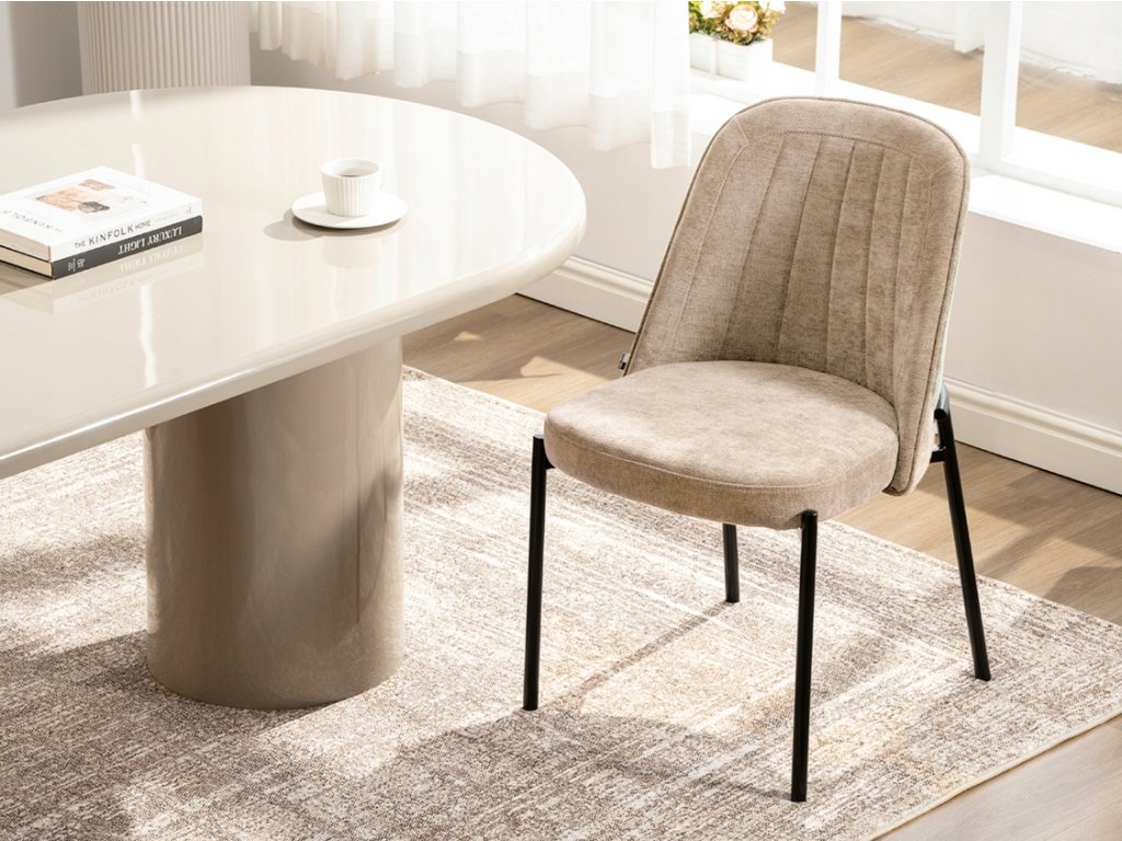 Jídelní židle Ernest je navržena s důrazem na jednoduchý tvar, funkčnost a každodenní komfort. Absence područek umožňuje snadné zasunutí ke stolu a židle tak působí vzdušně i v menších prostorech. Světle béžová čalounická látka dodává interiéru klidný a světlý charakter a dobře ladí s různými materiály i barevnými kombinacemi.