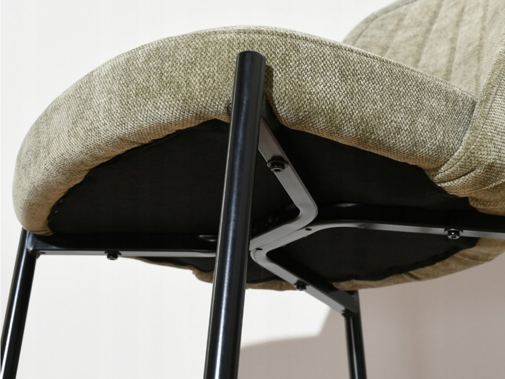 Celý korpus židle je zasazen do jednolité kovové konstrukce z lakované oceli v černém provedení. Podnoží plynule přechází do zadní části opěráku, čímž vytváří pevný a vizuálně čistý celek. Konstrukce je stabilní, odolná a vhodná pro každodenní používání.