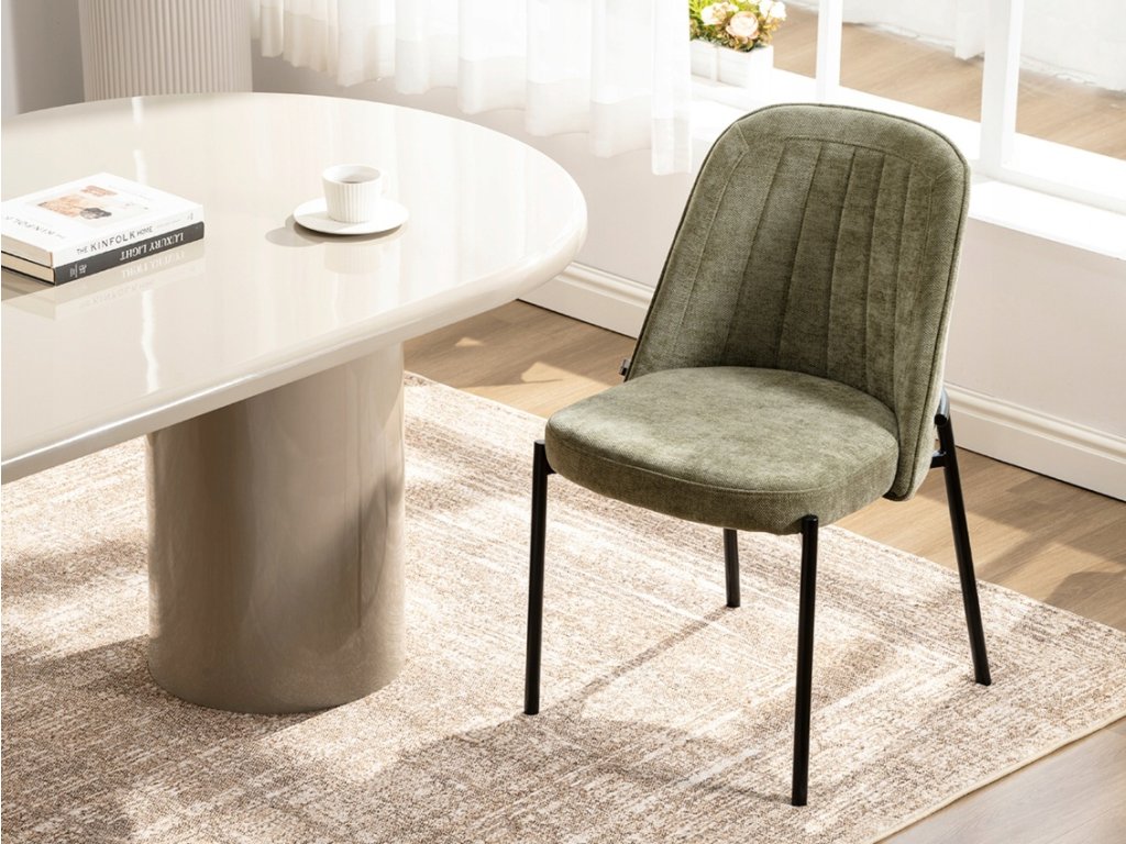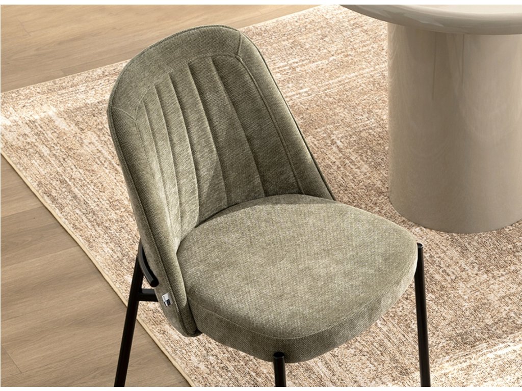 Jídelní židle Ernest je navržena s důrazem na jednoduchý tvar, funkčnost a každodenní pohodlí. Díky absenci područek umožňuje snadné zasunutí ke stolu a působí vzdušně i v menších prostorech. Zelená čalounická látka dodává interiéru osobitý a příjemně přírodní vzhled, který se snadno kombinuje s neutrálními i kontrastními materiály.