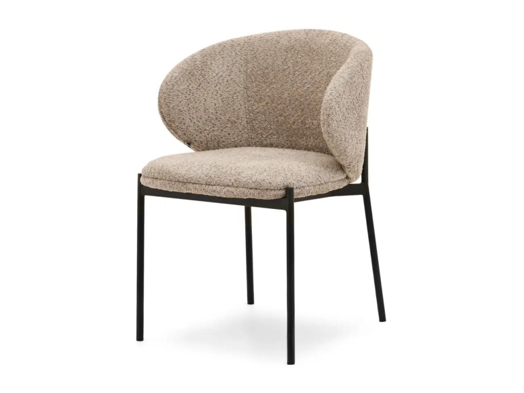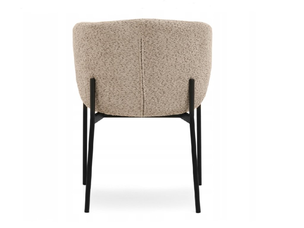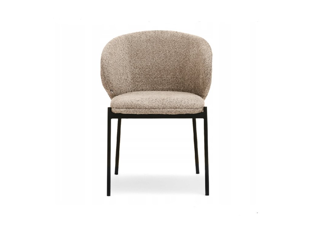 Jídelní židle Maren v tmavě béžové látce typu buklé nabízí pohodlné sezení a moderní design s výraznými organickými liniemi. Černá kovová podnož vytváří elegantní kontrast a dodává židli nadčasový vzhled. Díky kvalitním materiálům, kompaktnímu tvaru a pevnému provedení je vhodná do domácností i komerčních prostor. Zadní část opěráku zdobí decentně přetažené kovové linie, které podtrhují celkovou eleganci židle.