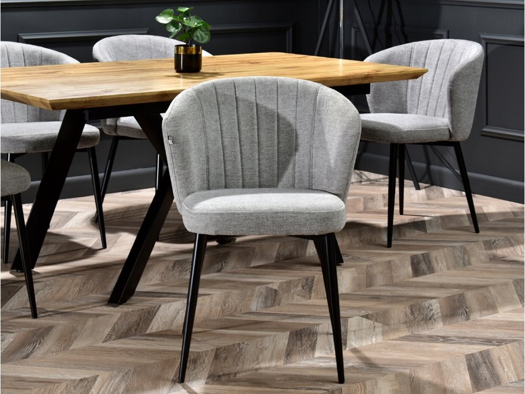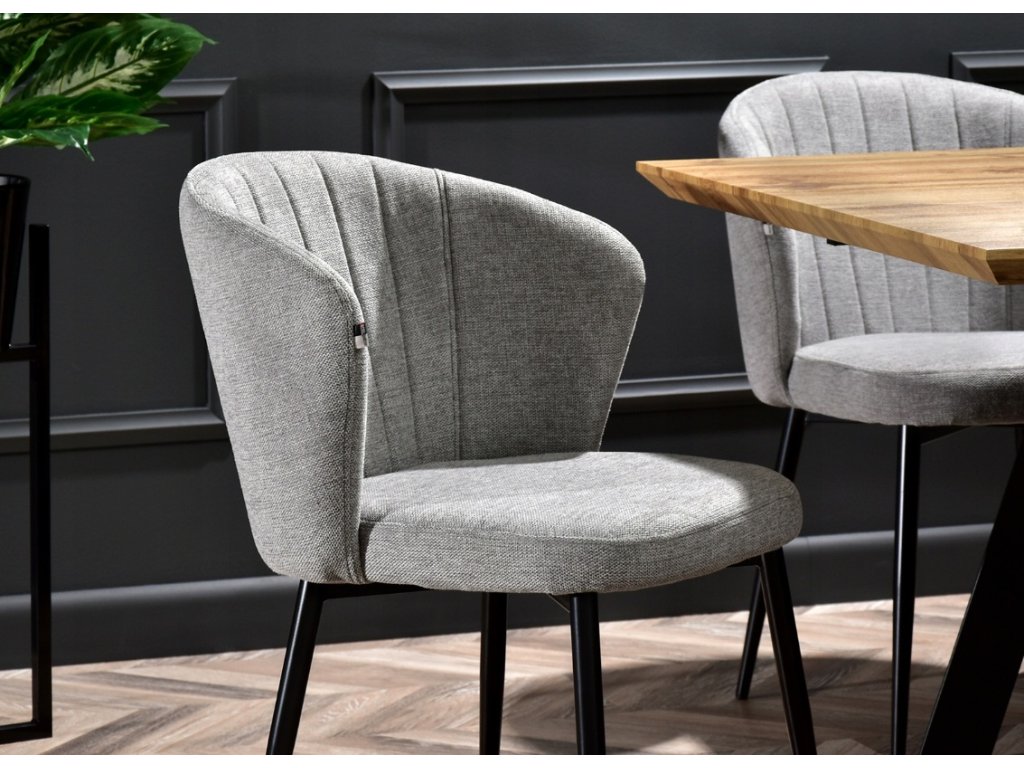 Židle působí vizuálně lehce, přesto nabízí stabilní a jisté sezení. Měkké čalounění v kombinaci s pevným sedákem vytváří vyvážený pocit pohodlí a opory bez zbytečné robustnosti.