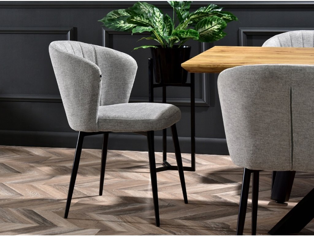 Jídelní židle Zita je čalouněná jemnou látkou v moderním šedém odstínu, který působí nadčasově, klidně a velmi univerzálně. Šedá barva se snadno kombinuje s různými materiály i barevnostmi interiéru a pomáhá vytvářet vyvážený, harmonický celek vhodný do současných i klasických prostor.
