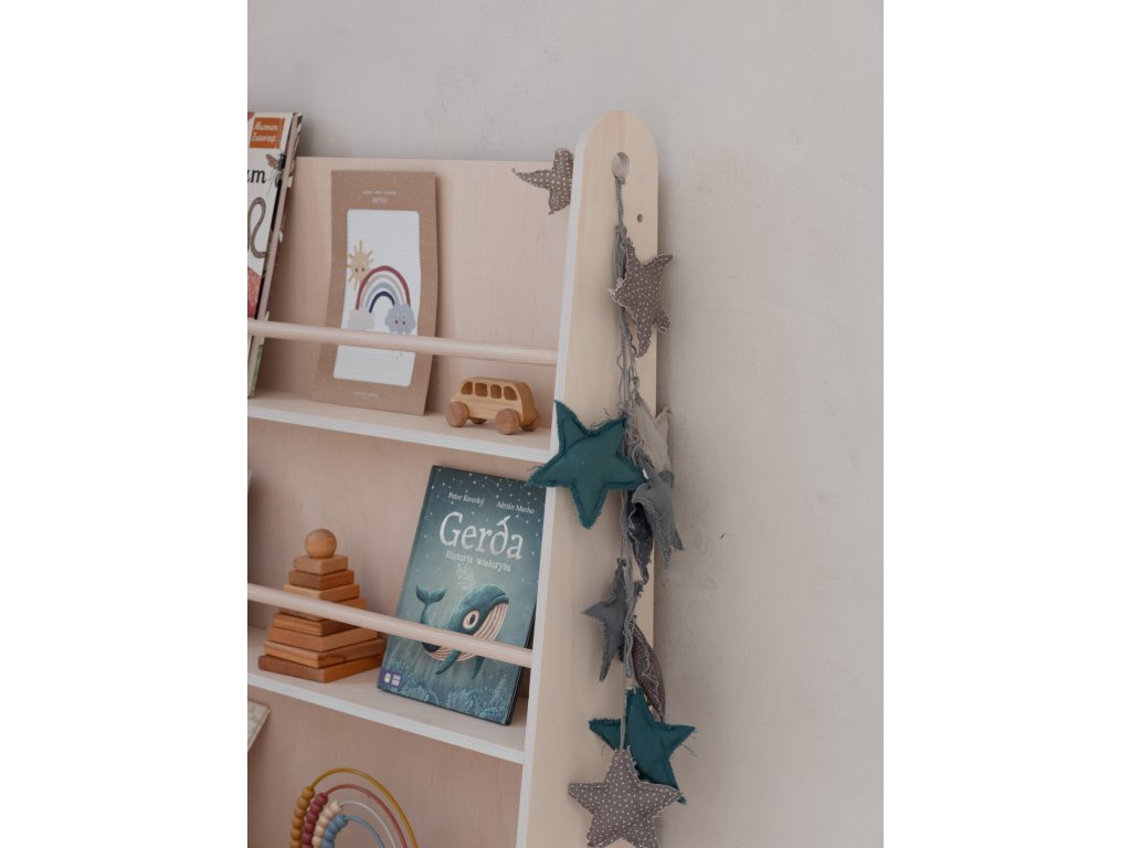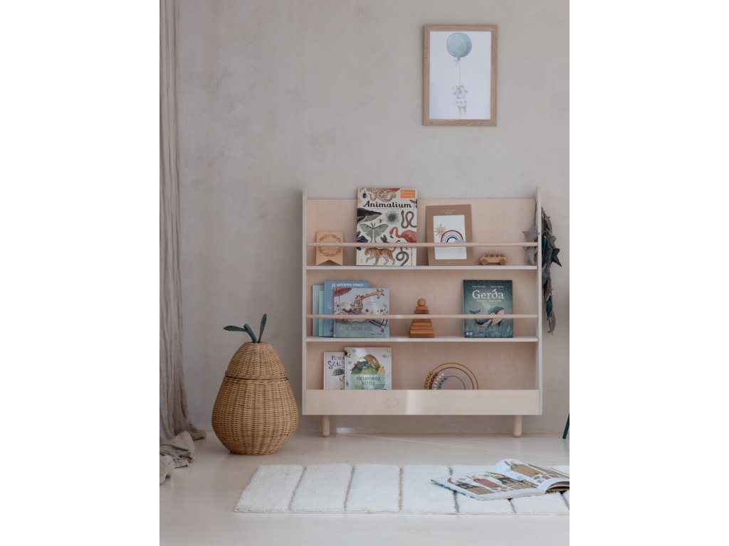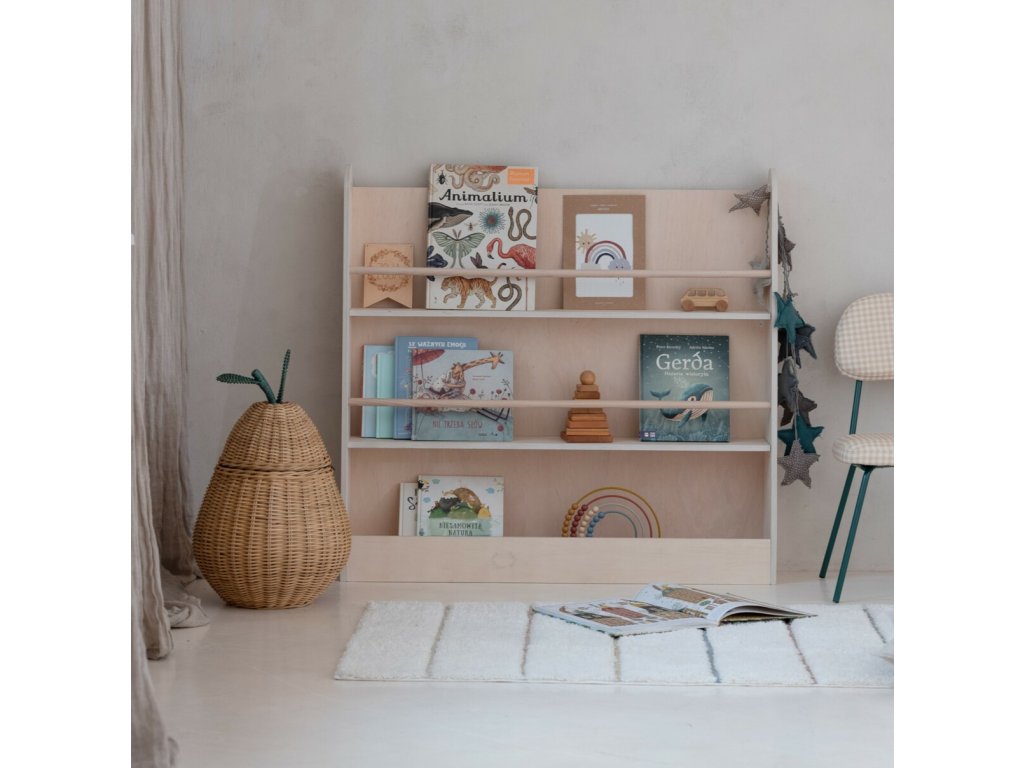 Nízká knihovna splňuje prvky Montessori nábytku, který je svou velikostí přizpůsoben dětskému vzrůstu. Děti se zapojí do běžných činností, jako je uklízení hraček a rovnání knih. Hravý způsob, jak se naučit nezbytným dovednostem.