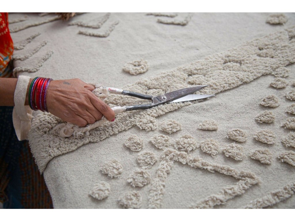 Koberec je šetrný k životnímu prostředí, na jeho výrobu byla použita bavlna, recyklovaná bavlna a přírodní barvy. Pečlivá ruční práce za férových podmínek pro zaměstnance z něho tvoří jedinečný a etický kousek.