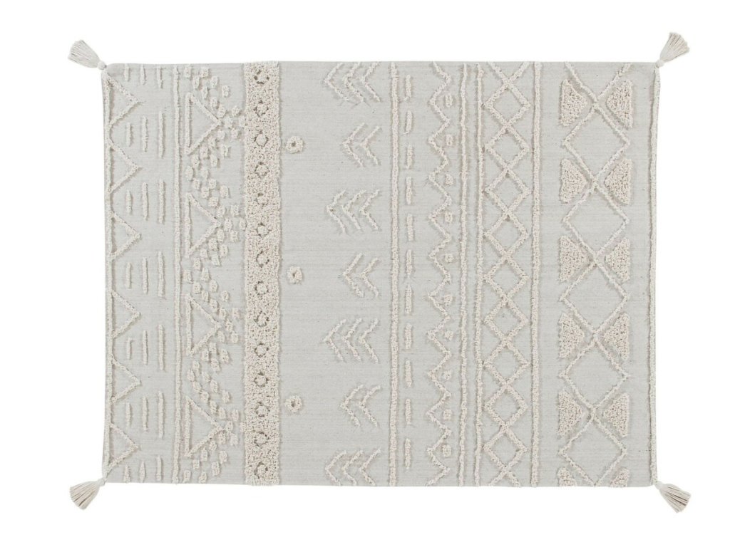 Bavlněný koberec v přírodní barvě se střapcem v každém rohu, od světoznámé značky Lorena Canals, s vystouplým indiánským vzorem. Nápaditý design s oblíbeným kmenovým motivem je vhodný do všech pokojů. Díky možnosti praní v pračce jej můžete umístit i do venkovních prostor.