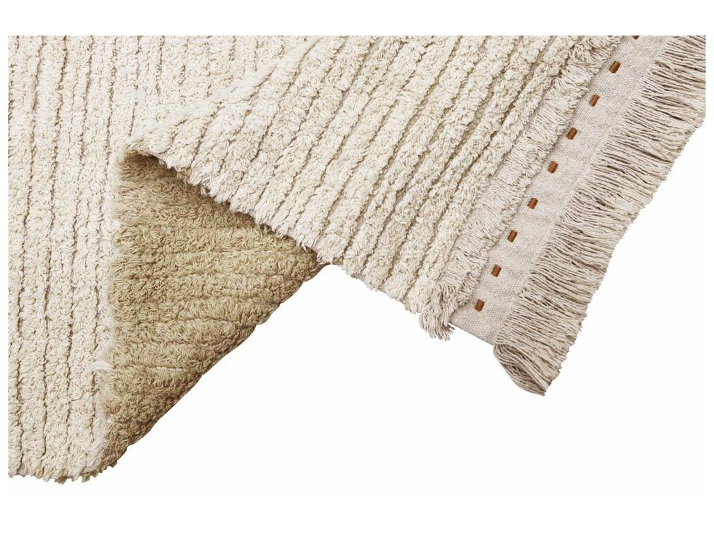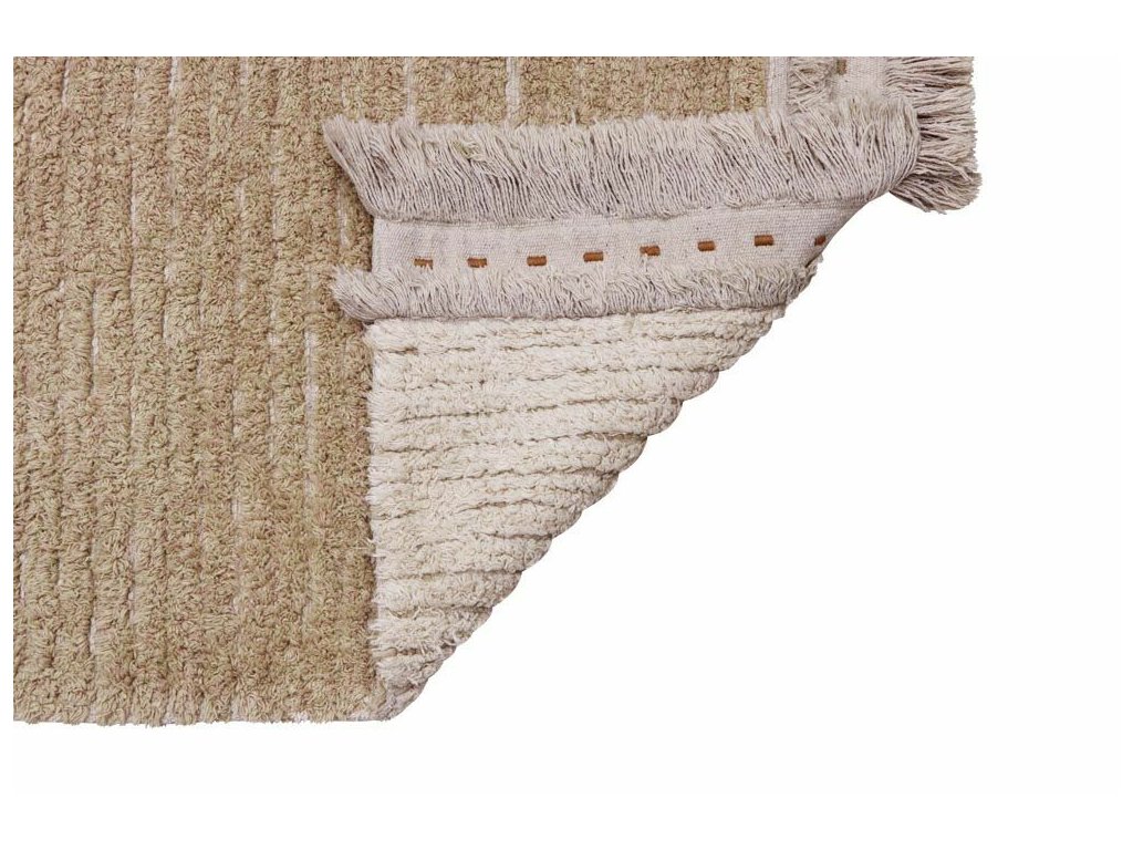 Měkoučký koberec s třásněmi v přírodní, terakotové, šalvějové a olivové barvě snadno zakomponujete do každého interiéru. Díky možnosti praní v pračce jej můžete umístit i do venkovních prostor.