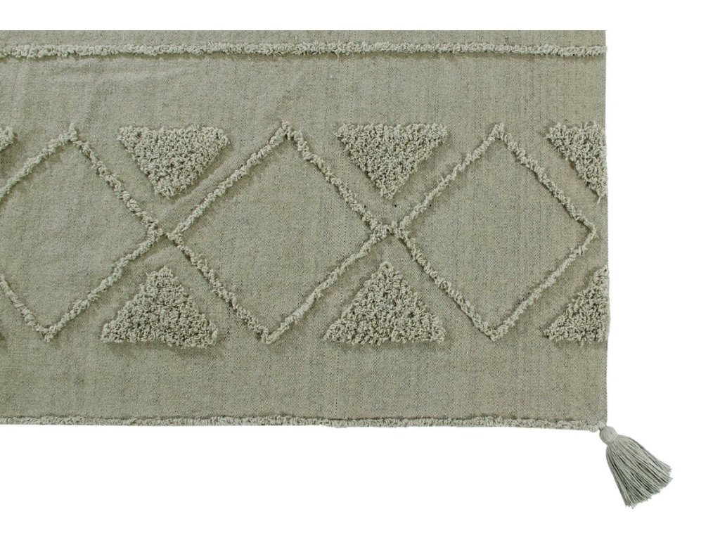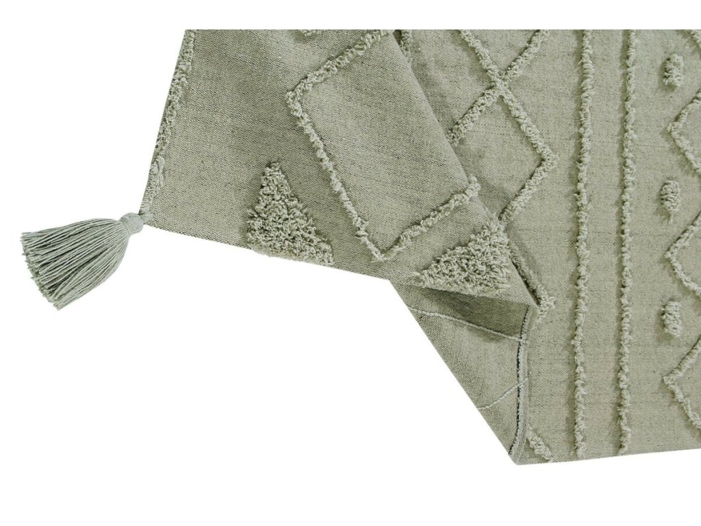 Bavlněný koberec v olivově zelené barvě se střapcem v každém rohu, od světoznámé značky Lorena Canals, s vystouplým indiánským vzorem. Nápaditý design s oblíbeným kmenovým motivem je vhodný do všech pokojů. Díky možnosti praní v pračce jej můžete umístit i do venkovních prostor.