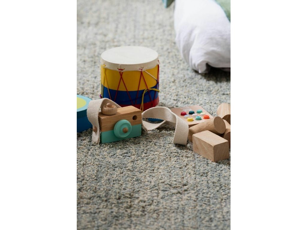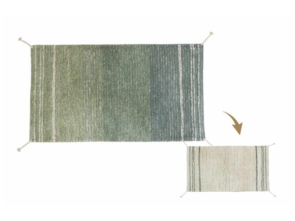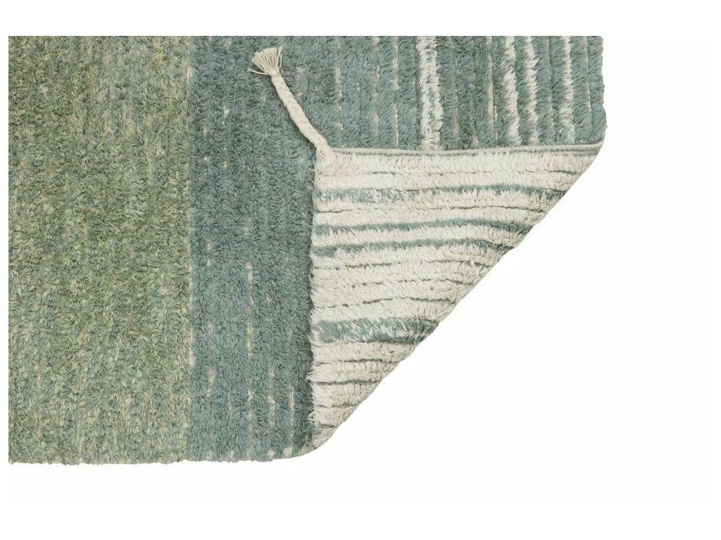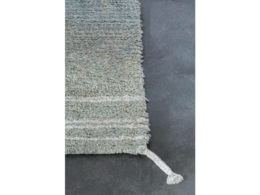 Měkoučký koberec v přírodní, retro modré a olivové barvě snadno zakomponujete do každého interiéru. Koberec má v každém roku třásně spletené do copánku. Díky možnosti praní v pračce jej můžete umístit i do venkovních prostor.