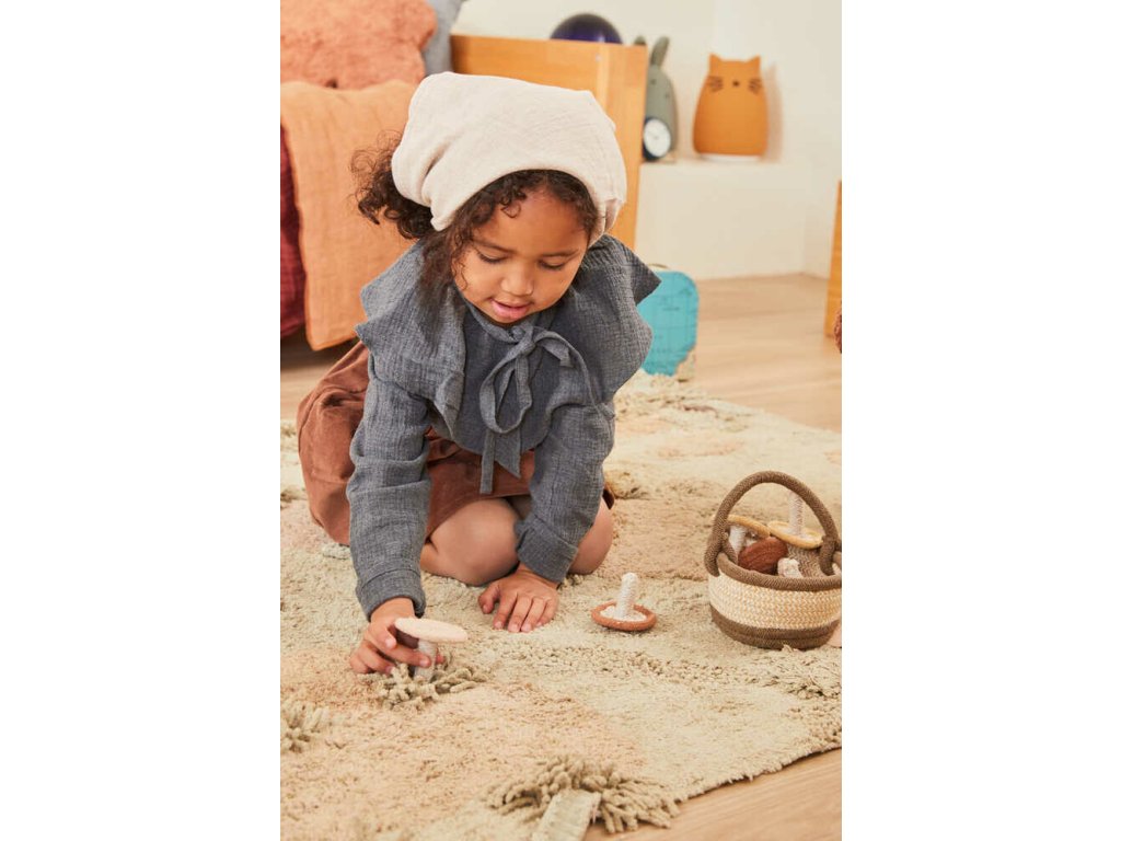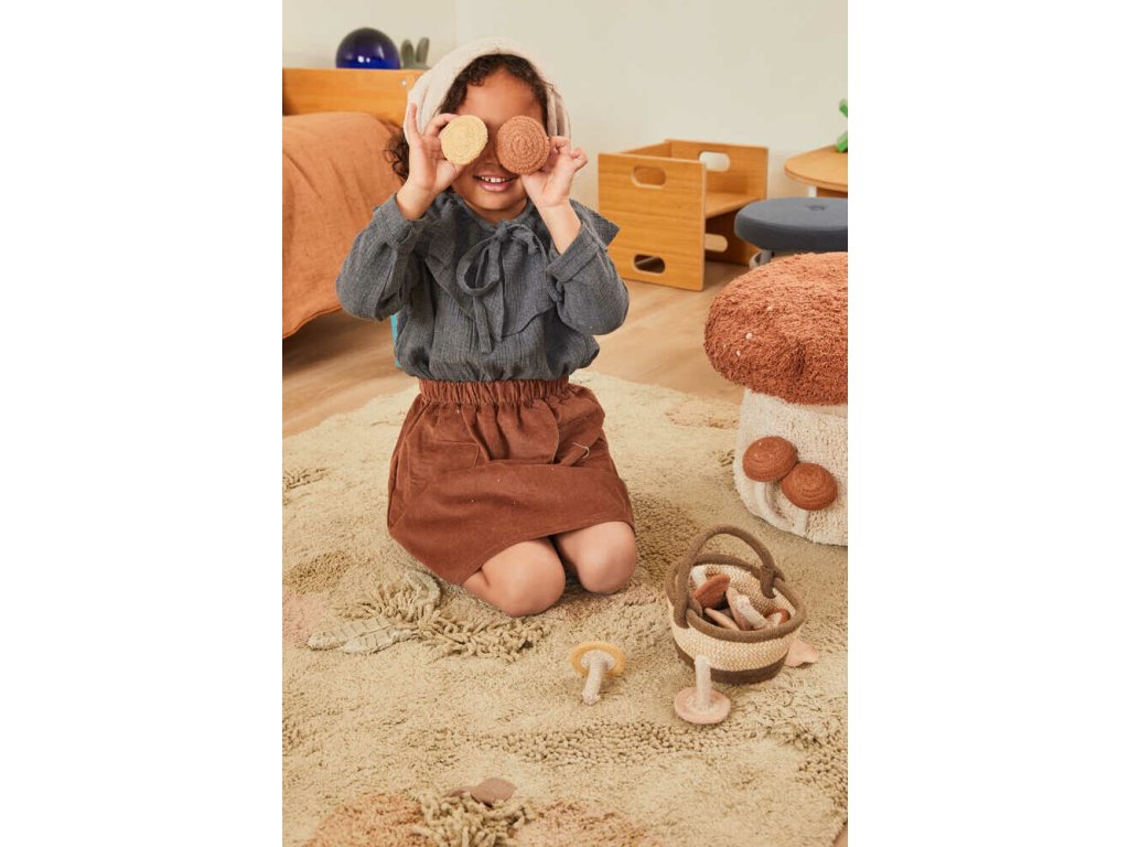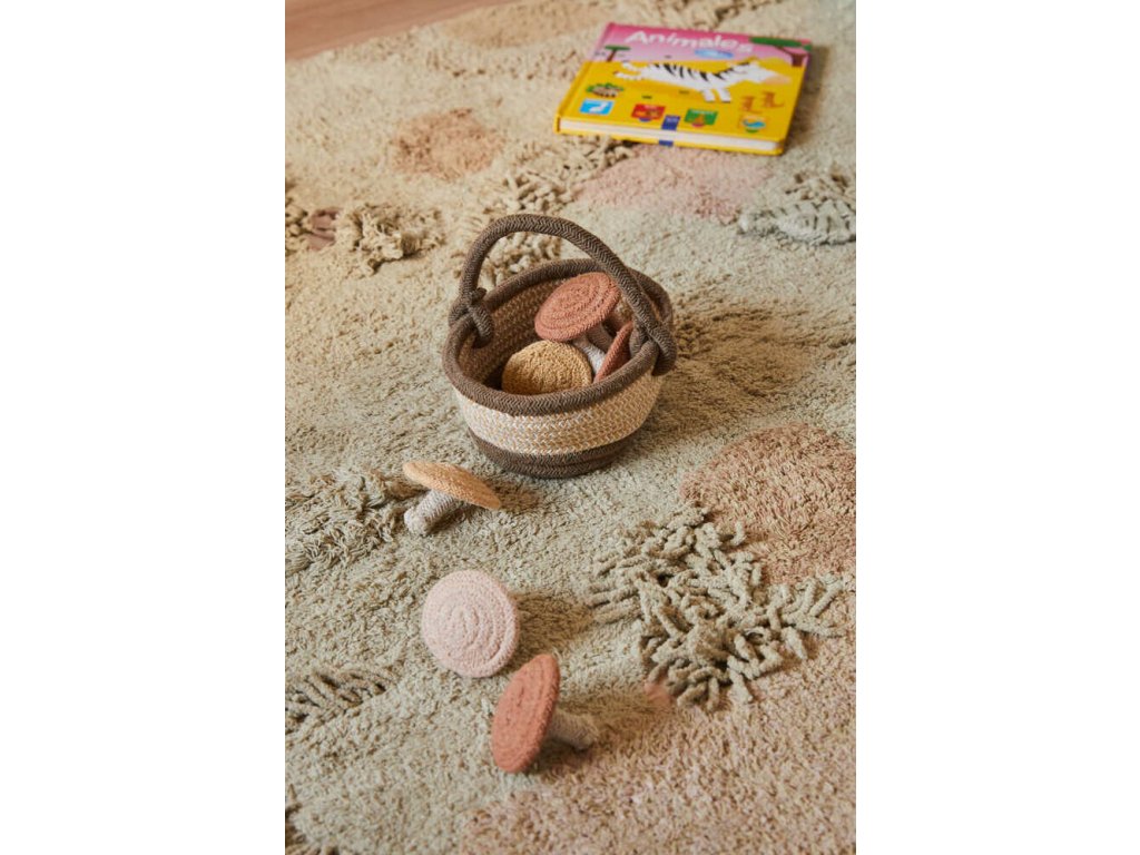 Kolekce Mushrooms Hunt - Sbírání hub vnese do domovů nádech tajuplného lesa a vtáhne děti do dobrodružné hry na sbírání hub. V kolekci jsou na výběr různé koberce, doplňky a bavlněné hračky, jež rozvíjejí dětskou fantazii. Důraz je kladený na každý detail, nezávadnost materiálů a celkový dojem dotahují příjemné odstíny, které v interiéru navozují útulnou atmosféru.