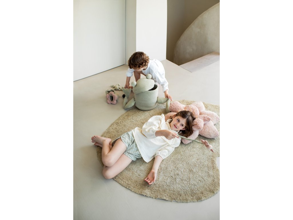 Zelenkavý koberec ve tvaru jezírka, na němž je bavlněným knoflíkem připnutá lilie. Lilie se skládá ze dvou oddělitelných částí. Děti si mohou na koberečku hrát, odpočívat s hlavou na leknínu nebo si kytku odepnout a zapojit ji do svých her. Součástí balení je bavlněná taška s logem značky a obrázkem koberce.