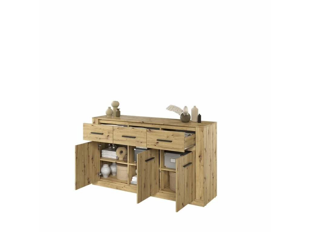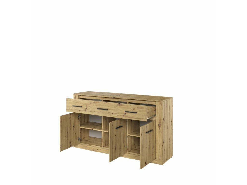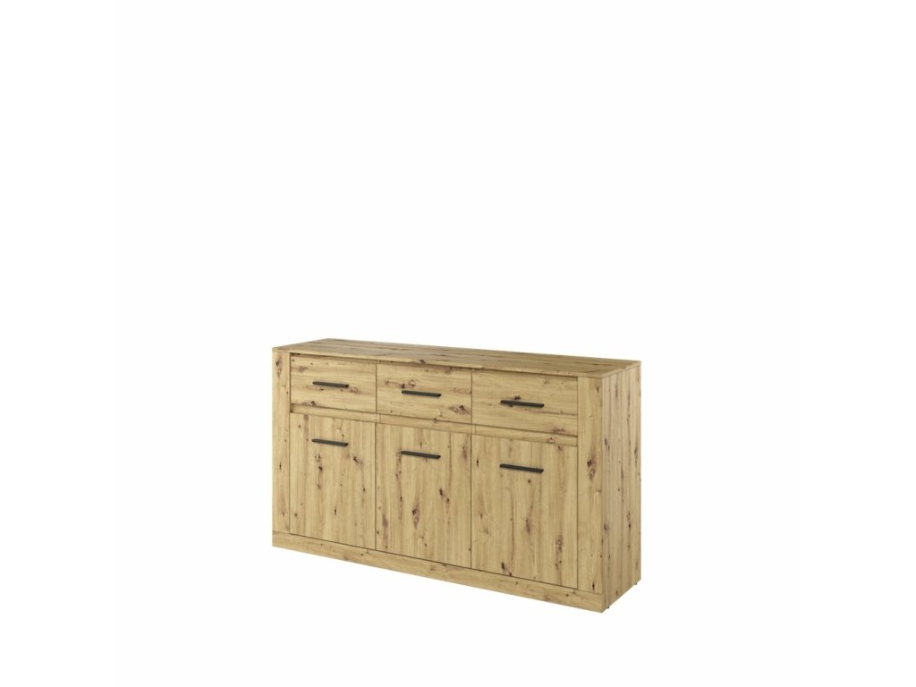 - moderní třídveřová komoda s výsuvnými zásuvkami se díky jednoduchému tvaru bude hodit do jakéhokoliv interiéru