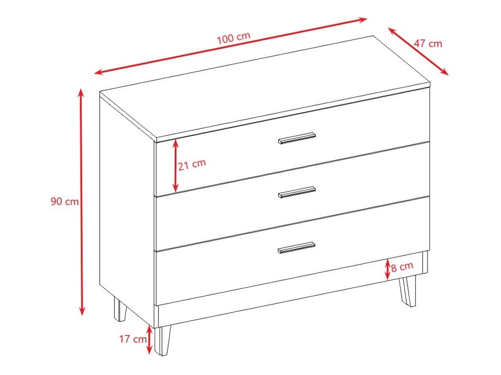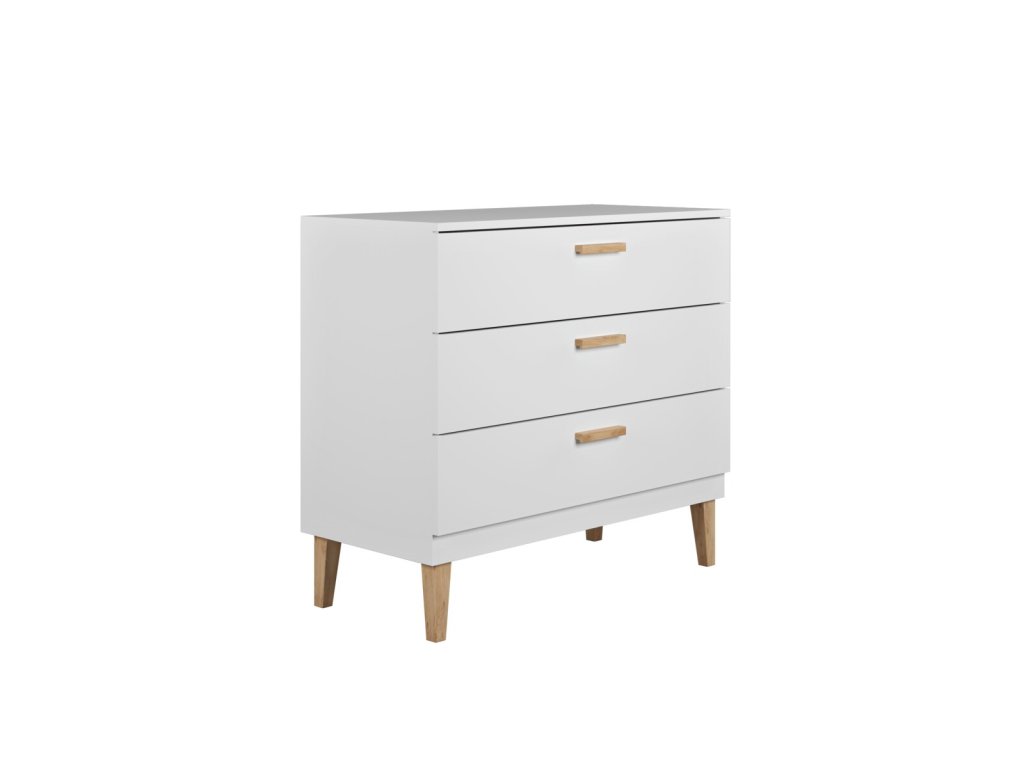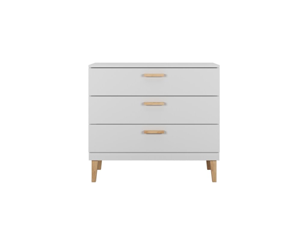 Praktická komoda se třemi zásuvkami je ideálním místem k uskladnění hraček a oblečení. Komoda je v neutrální barvě, jež se hodí do různých pokojů. Své místo nalezne v obývacím pokoji, ložnici a dětském pokojíčku, ve kterém především oceníte tichý systémem zavírání zásuvek.