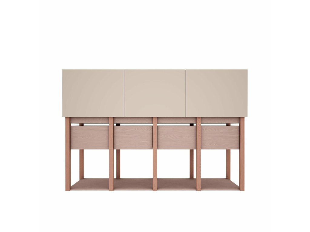 Komoda je rozdělena na prostorné zásuvky a police, které poskytují dostatek místa pro oblečení, hračky i školní pomůcky. Díky systému Push to Open se zásuvky i dvířka otevírají pouhým jemným stlačením – bez úchytek, čistě a pohodlně.