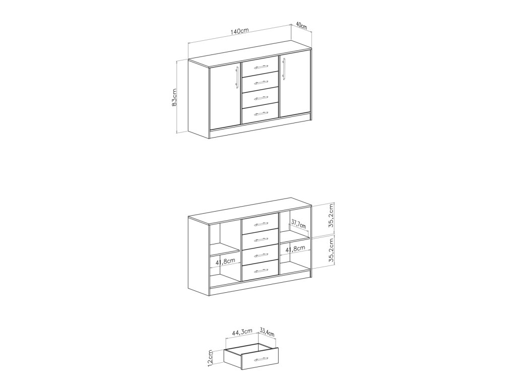 Prostorná komoda Smart je rozdělaná na tři části. Kraje nabídnou prostor v zavřených policích a střed tvoří zásuvky na drobné předměty a oblečení. Větší komoda se hodí do obývacích pokojů, ložnic i dětských a studentských pokojů.
