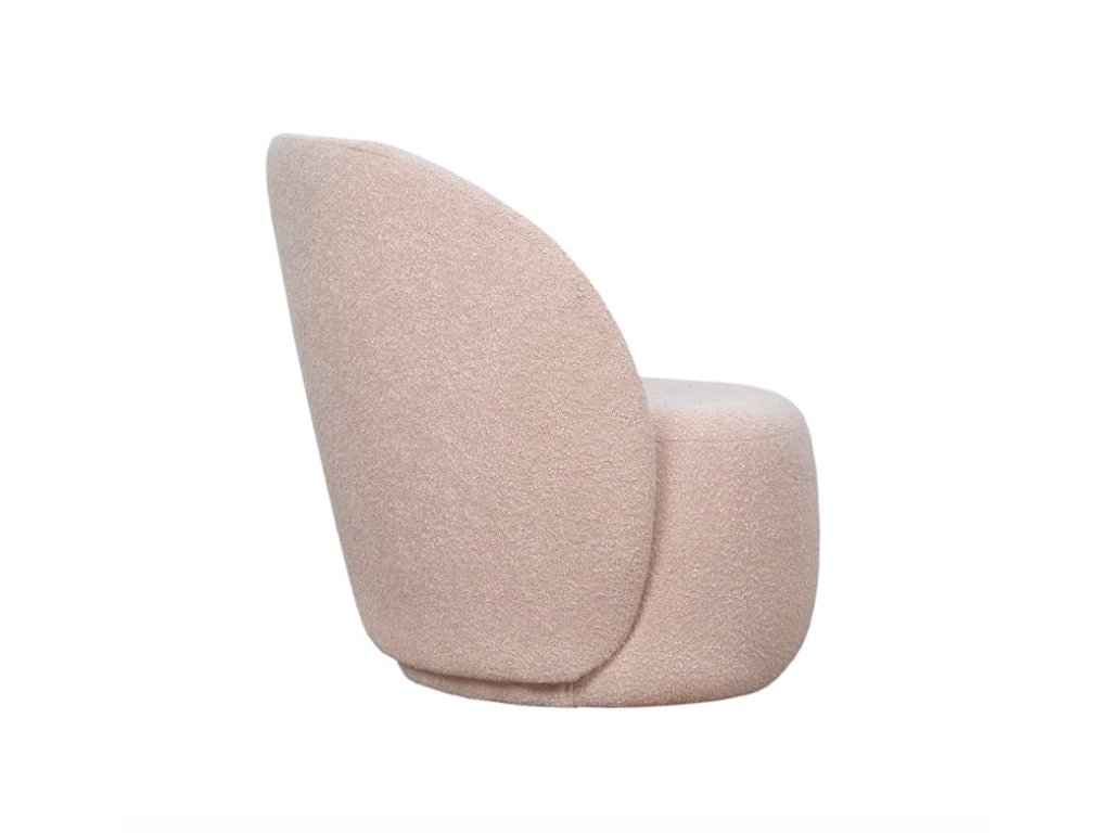 Křeslo je na výběr i v barvách látky Bouclé. Pojmenování látky pochází z francouzštiny a znamená smyčka. Jsou to právě smyčky, nopy a uzlíky, jež jsou typické pro povrch látky Bouclé. Látka se hojně využívá v oděvním průmyslu, svojí cestu si našla i do nábytkářského odvětví, kde je ceněná především pro svojí odolnost. S látkou Bouclé bude čalounění příjemné na dotyk a v interiéru vytvoří útulnou atmosféru.
