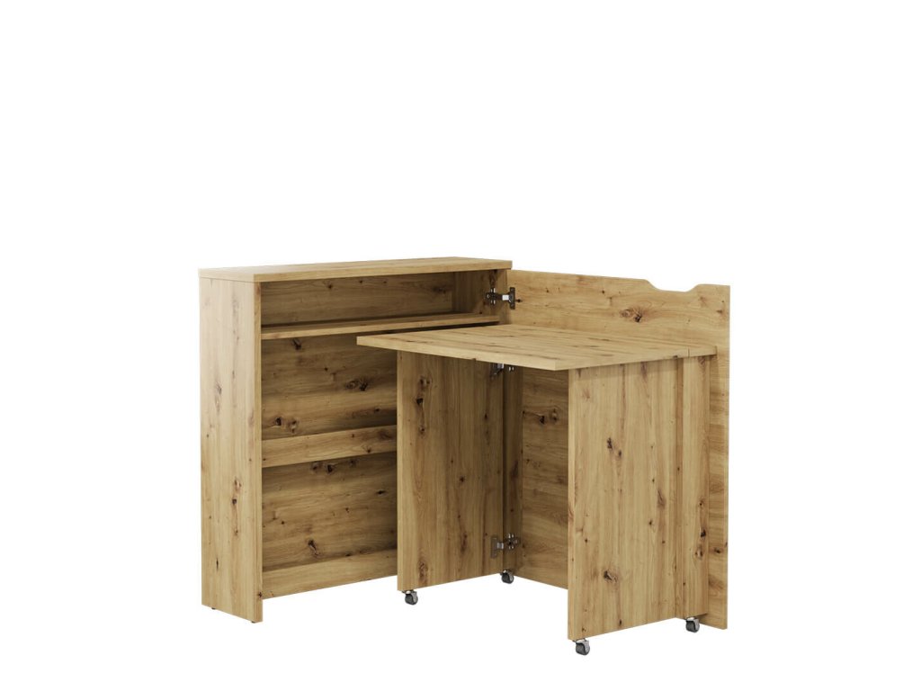 Rozkládací psací stůl Work Concept SLIM je vhodný do menších kanceláří a pokojů. Jednoduché ovládání, moderní design a praktické řešení pro všechny, kteří chtějí ušetřit místo a zároveň nepřijít o elegantně zařízený interiér kanceláře, dětského pokoje či studovny. Po rozložení stůl disponuje policemi, jež slouží k odkládání knih, časopisů nebo kancelářských potřeb.