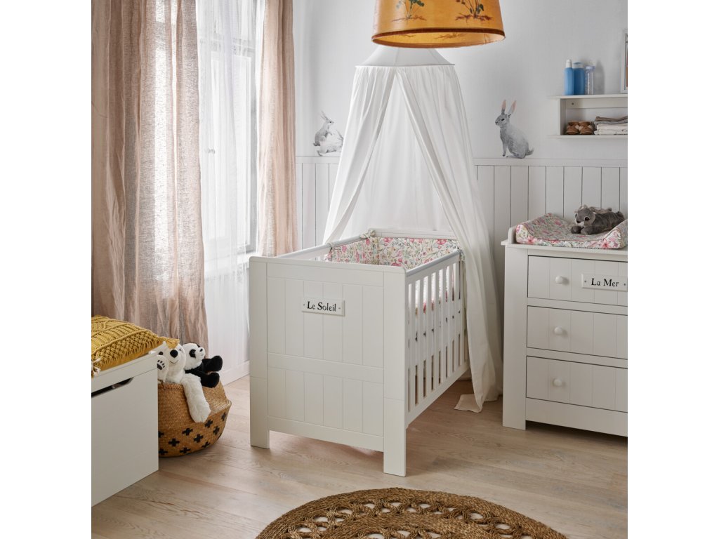Textilní sada je z jedné strany s obrázky květin a ze strany druhé v bílém odstínu. Příjemný a zdravotně nezávadný materiál zajistí klidný spánek dětí a miminek.