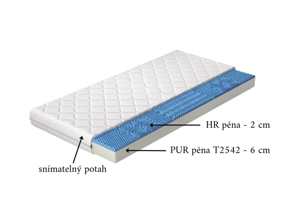 - výplň matrace z PUR pěny 6 cm, HR pěny 2 cm