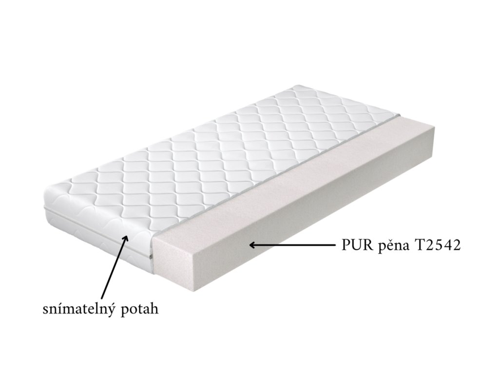 Výplň matrace se skládá z PUR pěny a je chráněná snímatelným potahem.