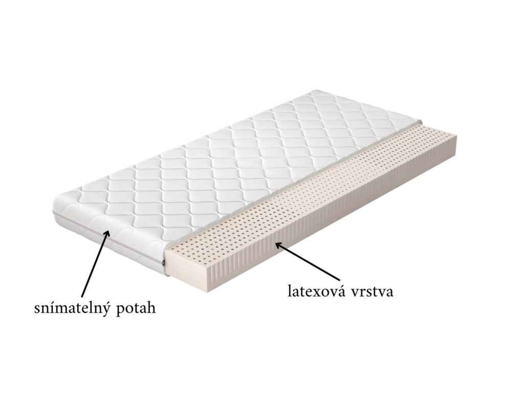 - latexová pěna s vysokou bodovou elasticitou, prodyšná, tvarově stálá, zdravotně nezávadná