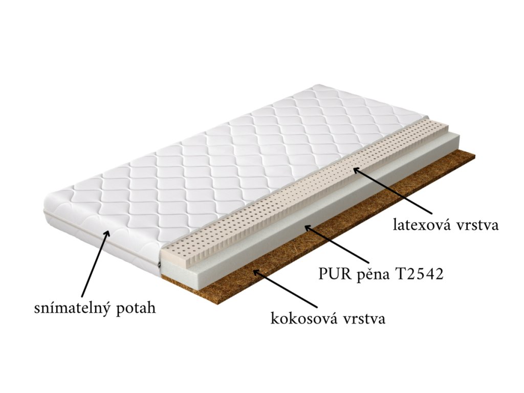 - výplň matrace z latexové pěny, PUR pěny a kokosové desky