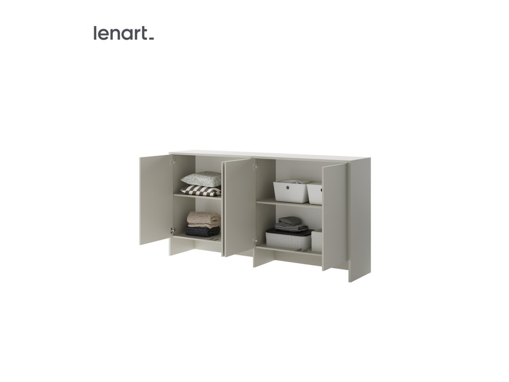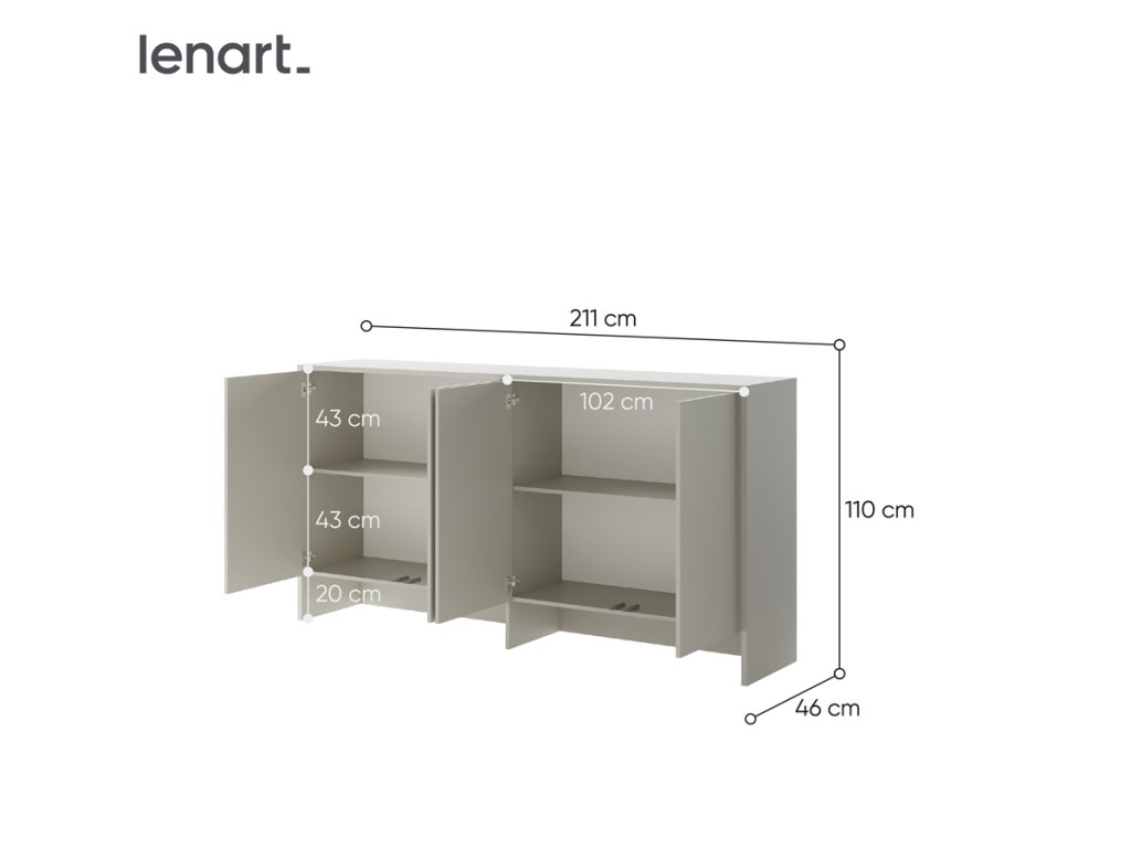 Lenart nástavba Bed Concept nad výklopnou postel BC-06, jež byla navržená k rozšíření úložného prostoru. Do uzavřených polic Lenart nástavby Bed Concept lze umístit oblečení, knihy a další věci k uskladnění.