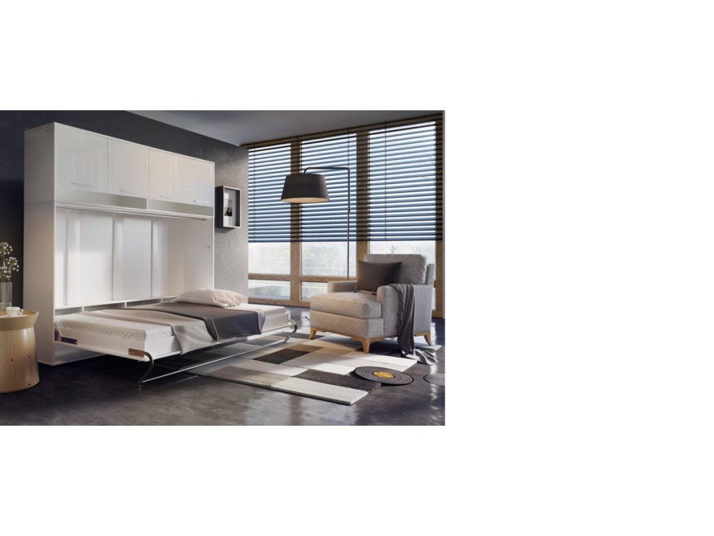 - spojením výklopné postele, nástavby a úzkých skříní docílíte efektivní sestavy nábytku s maximálním využitím prostoru