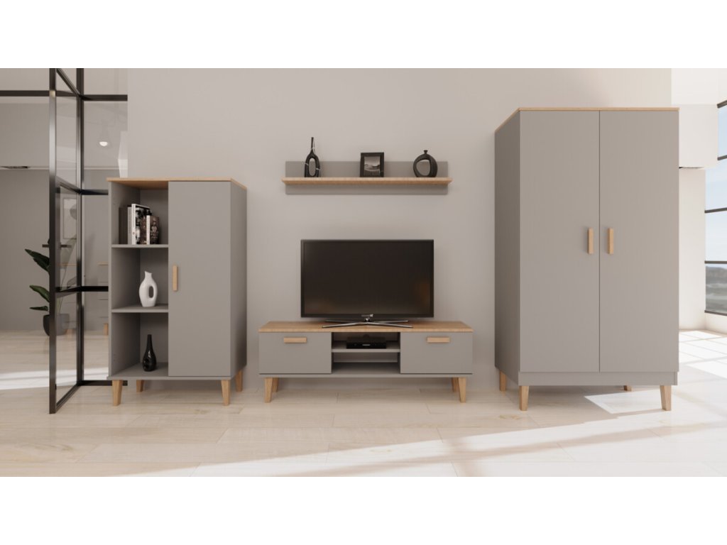 | Sestava se skládá: | Sestava se skládá Regál / knihovna Denver, Police Denver, Televizní stolek RTV Denver 120 cm, Šatní skříň Denver |