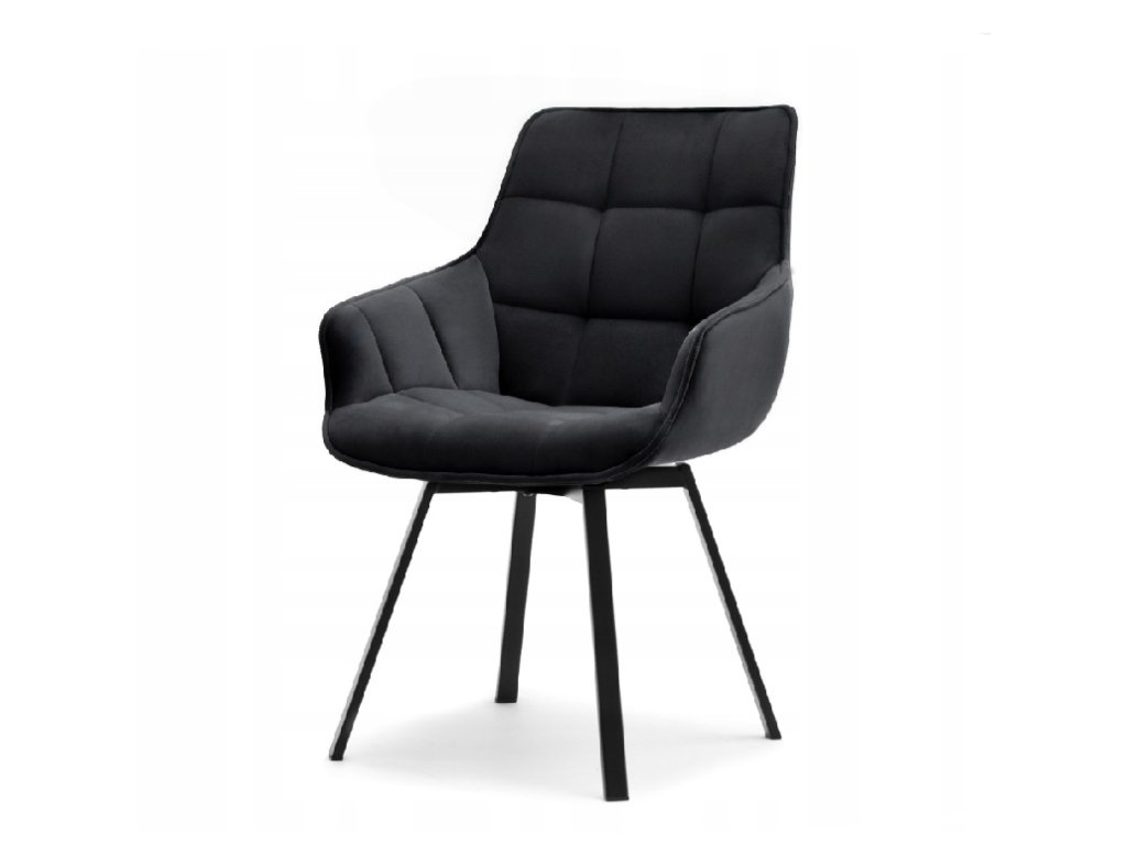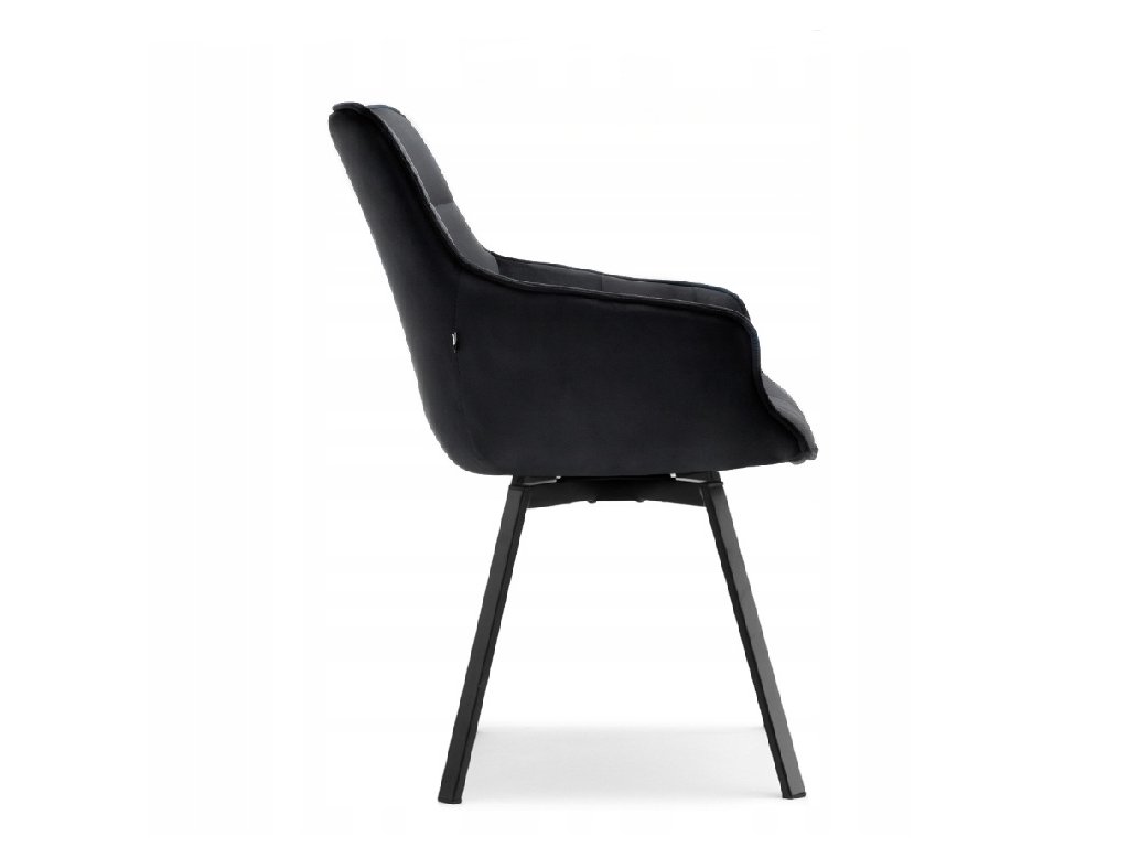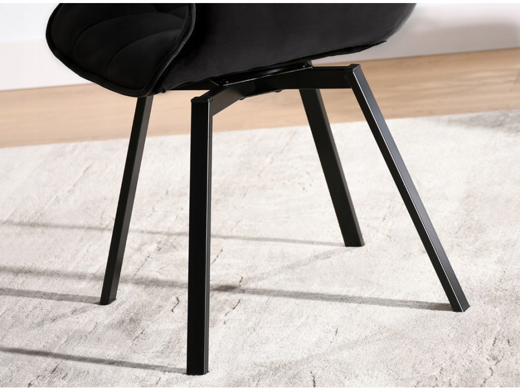 Černý velur působí elegantně, je měkký na dotek a vytváří útulný vzhled v každém interiéru. Ozdobné prošití na sedáku, opěráku i vnitřních područkách dodává židli jemnou strukturu a estetický detail. Černé kovové podnoží tvoří moderní a praktickou kombinaci, která se hodí k většině jídelních stolů i stylů interiéru.