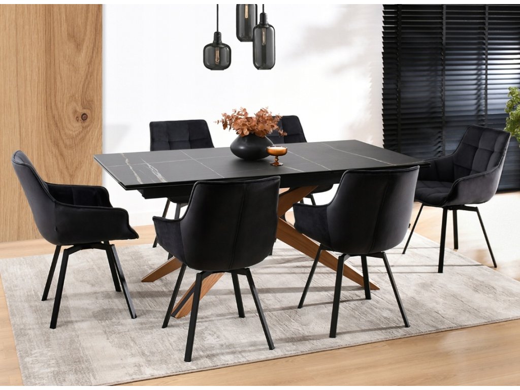 Otočná jídelní židle Aruba, černý velur/černé kovové podnoží