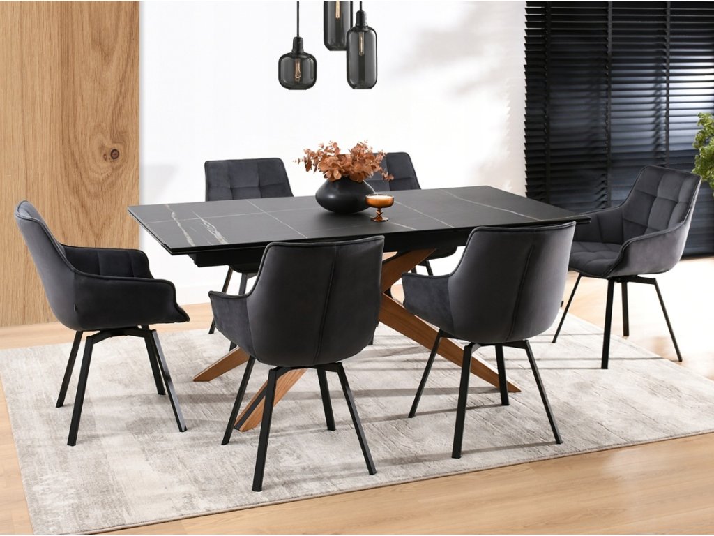 Otočná jídelní židle Aruba, tmavě šedý velur/černé kovové podnoží