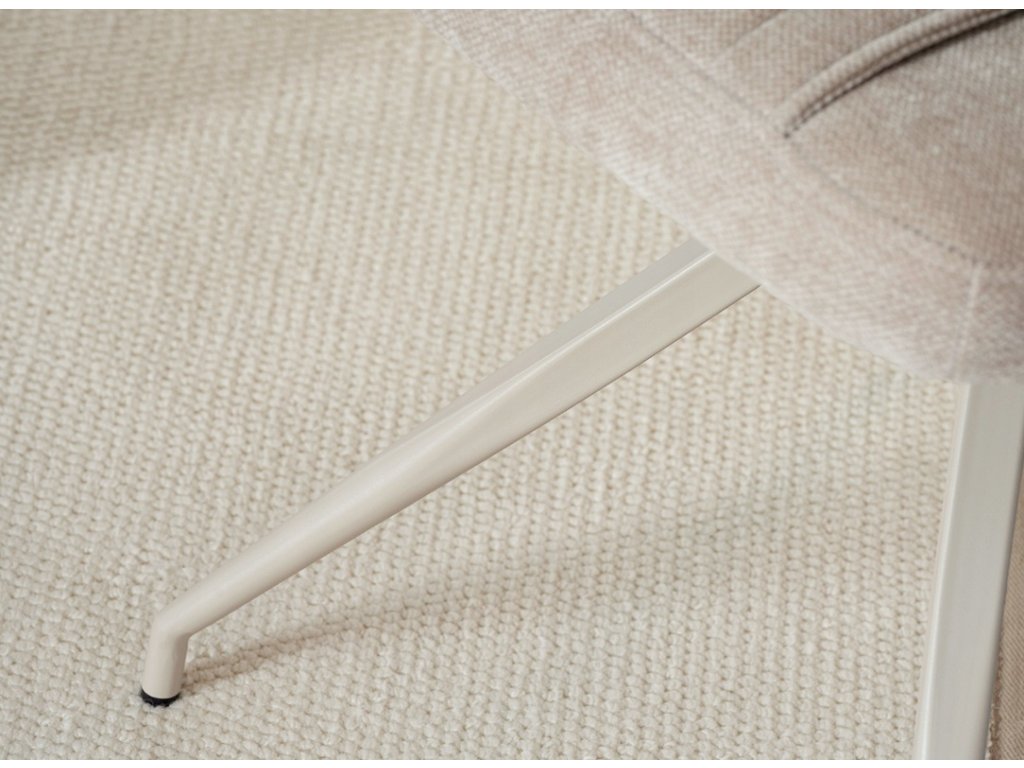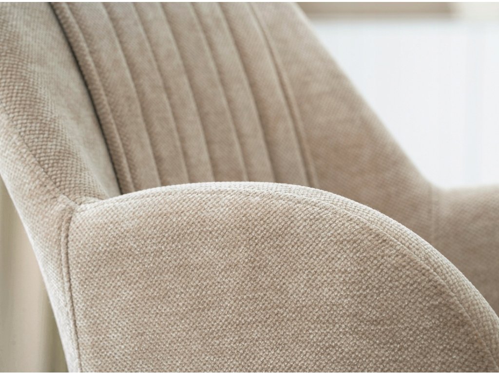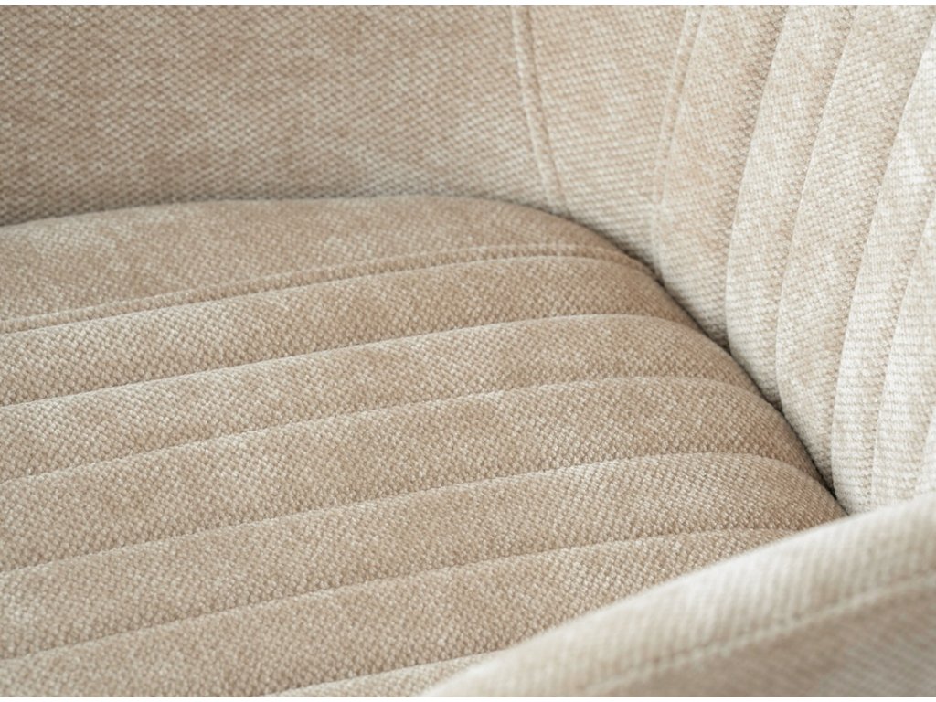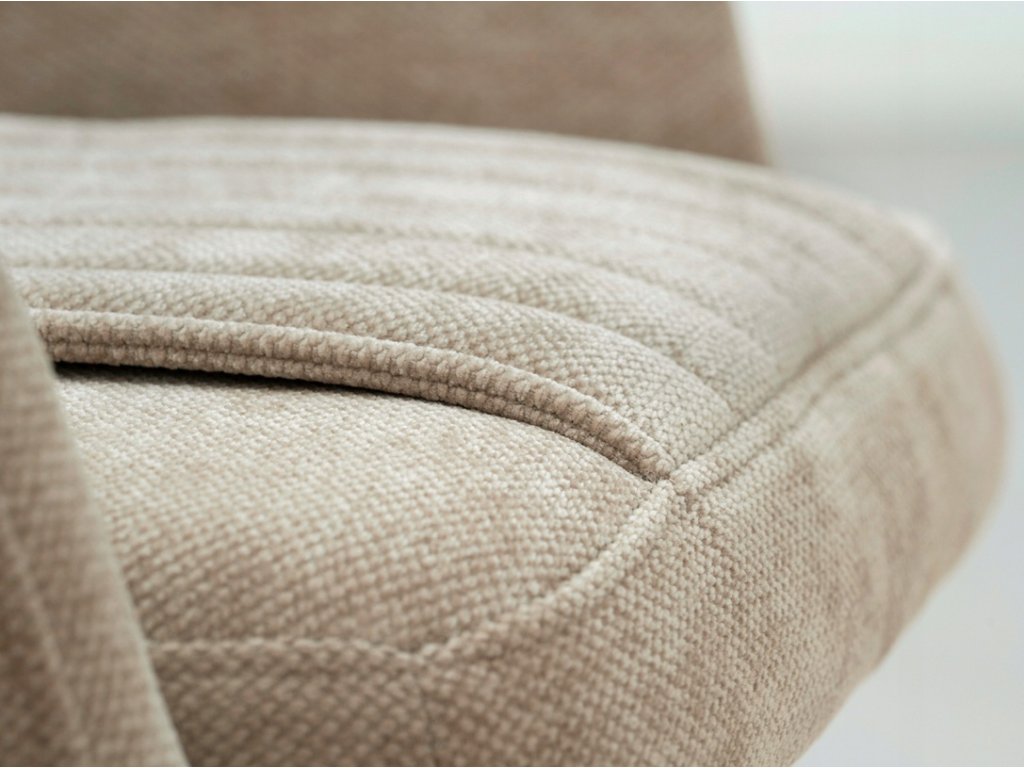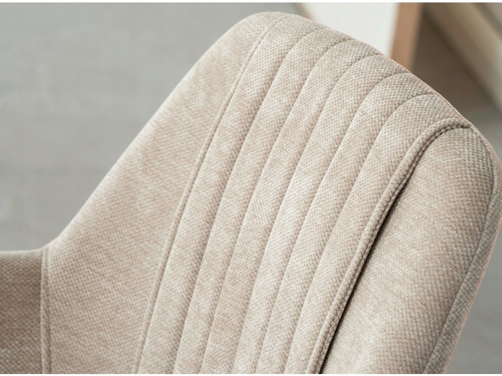 Židle Chiara zaujme jemnou světle béžovou látkou s příjemnou strukturou, která působí čistě, vzdušně a snadno se kombinuje s dřevěnými, laminovými i keramickými jídelními stoly. Vertikální prošití opěráku podtrhuje elegantní tvar a dodává židli moderní charakter vhodný do současných i minimalistických interiérů.