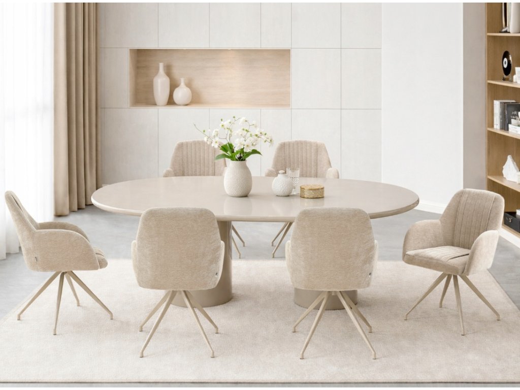 Otočná jídelní židle Chiara světle béžová / světlé kovové podnoží